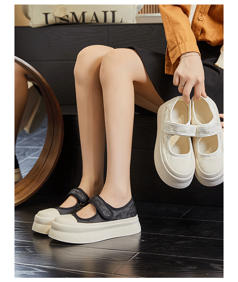 국내 트렌드 스타일 벨크로 메리제인 슈즈 여성용 2025 여름 신상 플랫 슈즈 여성 캐주얼 만능 패션 슈즈스토어 가기