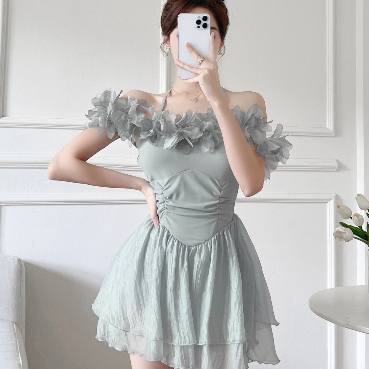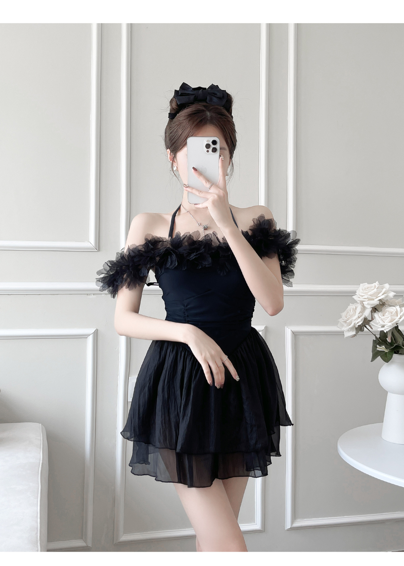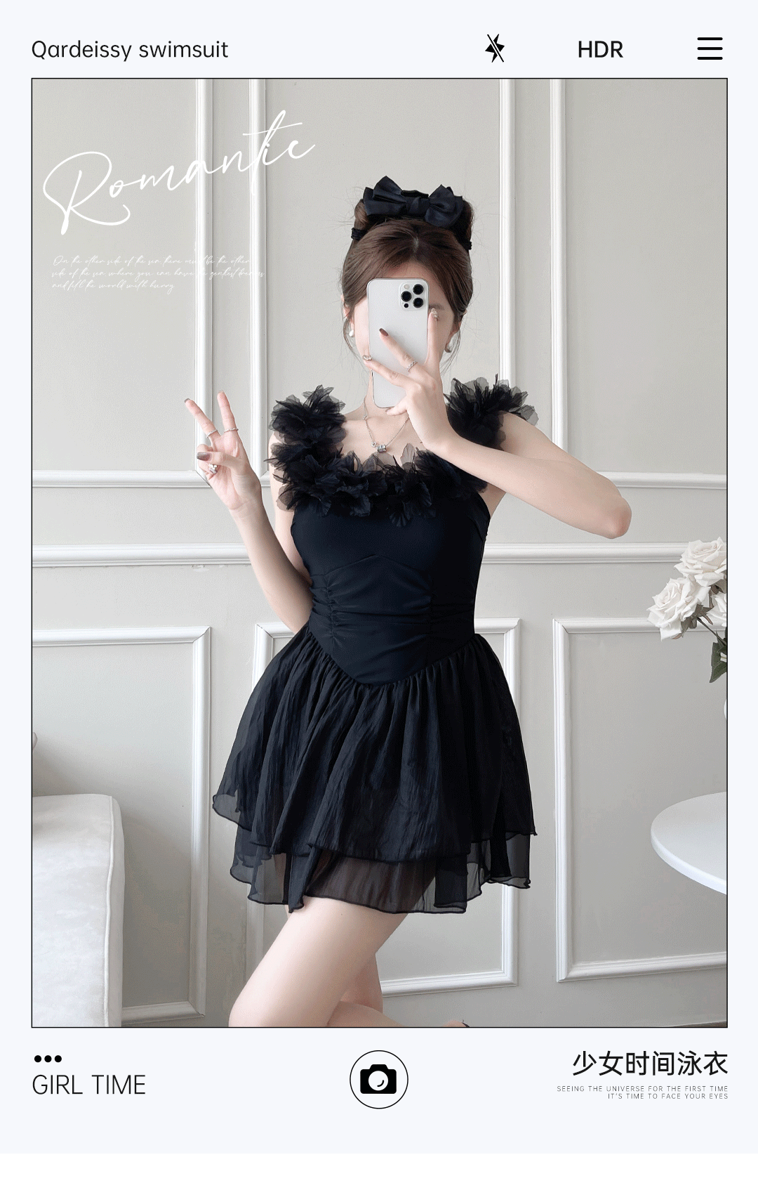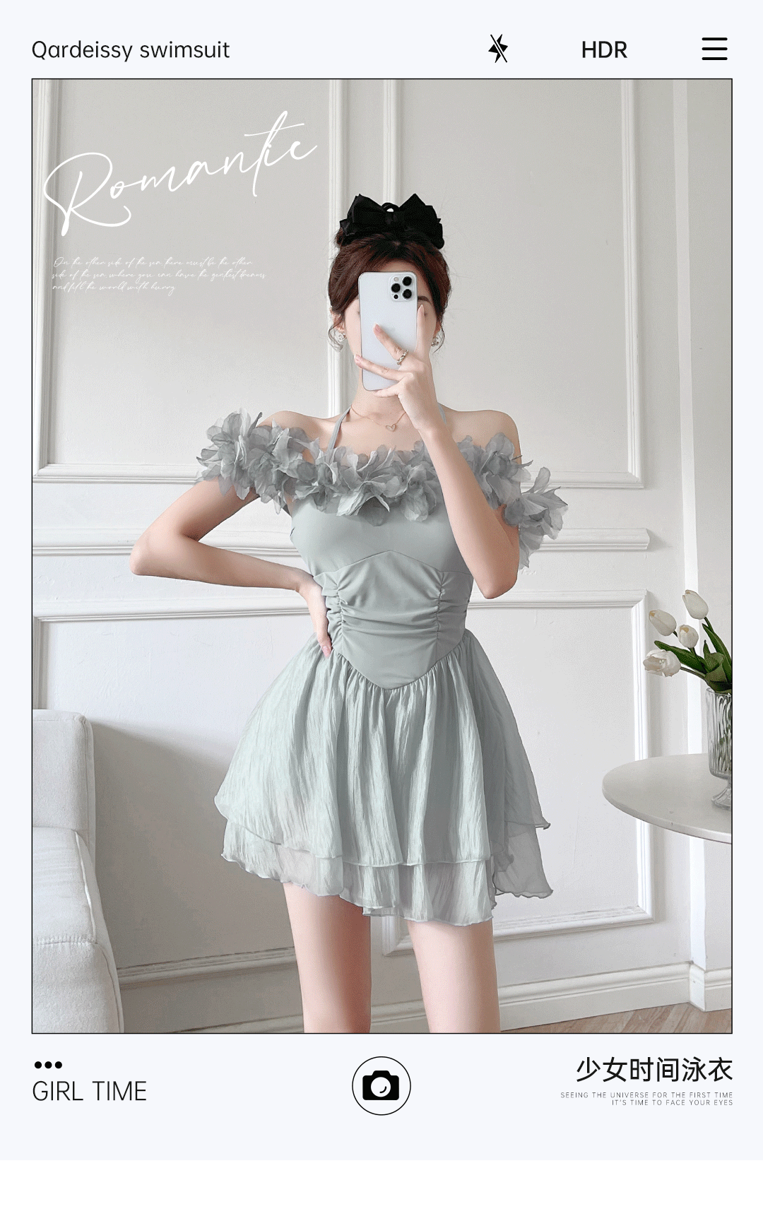2025년 신상 수영복 꽃잎 디자인 장식 백리스 섹시 원피스 스커트 스타일 소녀 달콤한 공주 수영복스토어 가기