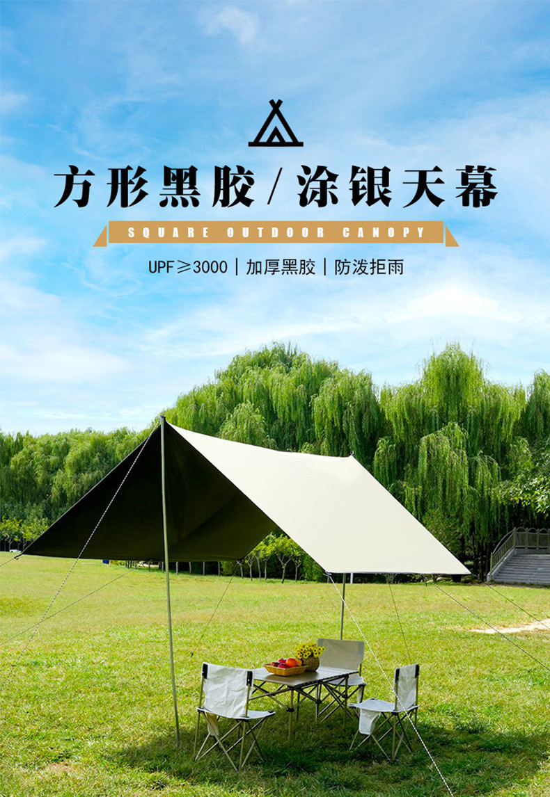 태양 방지 실버 코팅 스카이 커튼 방비 스카이 커튼 재고 야외 두꺼운 캠핑 피크닉 비치 스카이 커튼 블랙 접착제 스카이 커튼