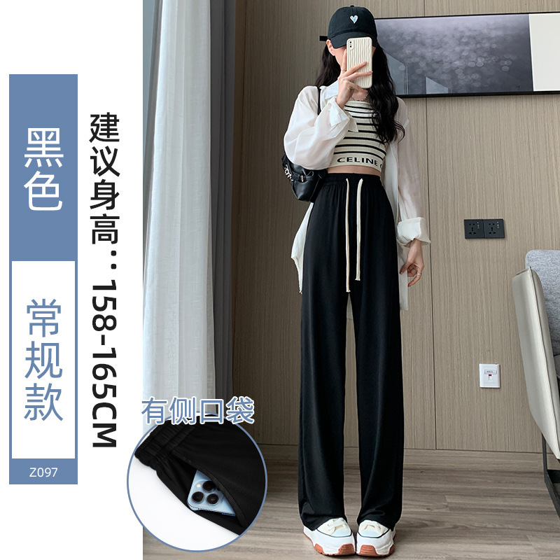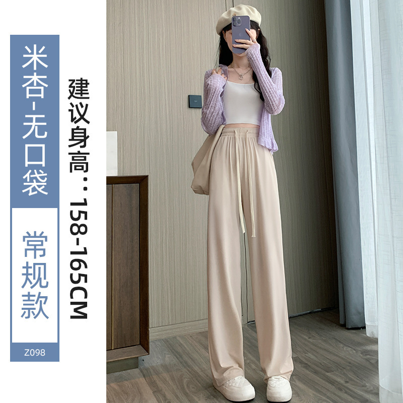 아이스 실크 넓은 다리 바지 여성용 여름 얇은 2024 새로운 캐주얼 투약 느슨한 좁은 버전 스트레이트 쿨 선스크린 바지스토어 가기