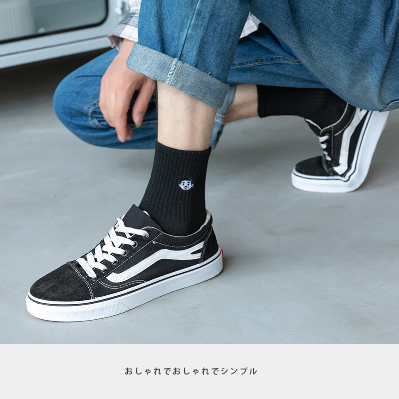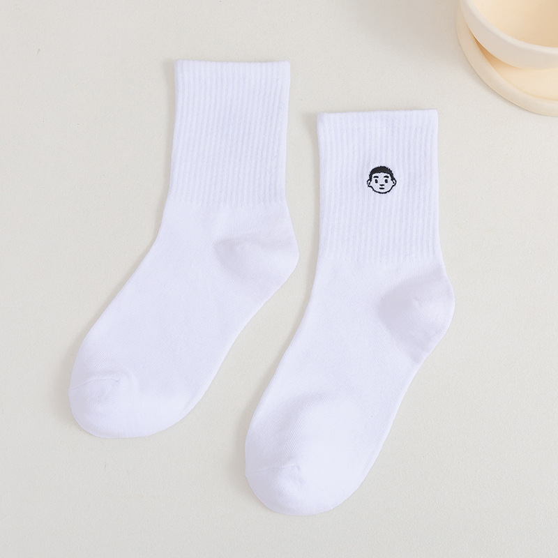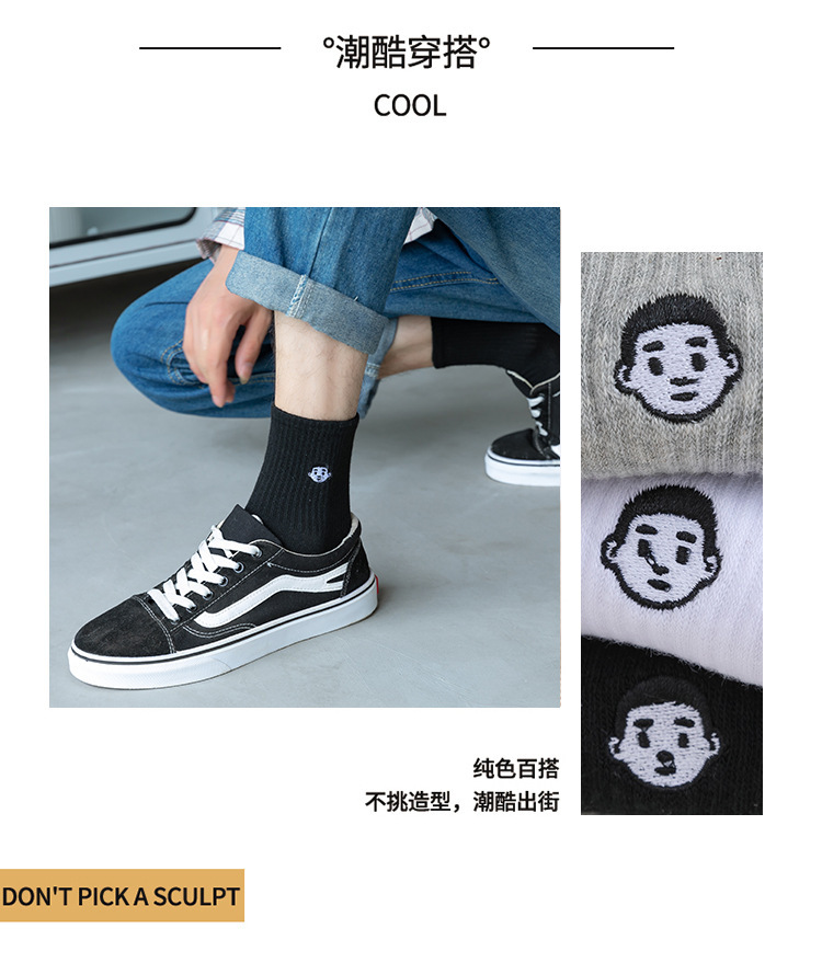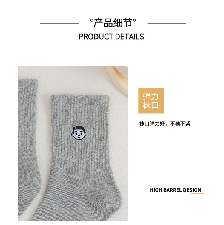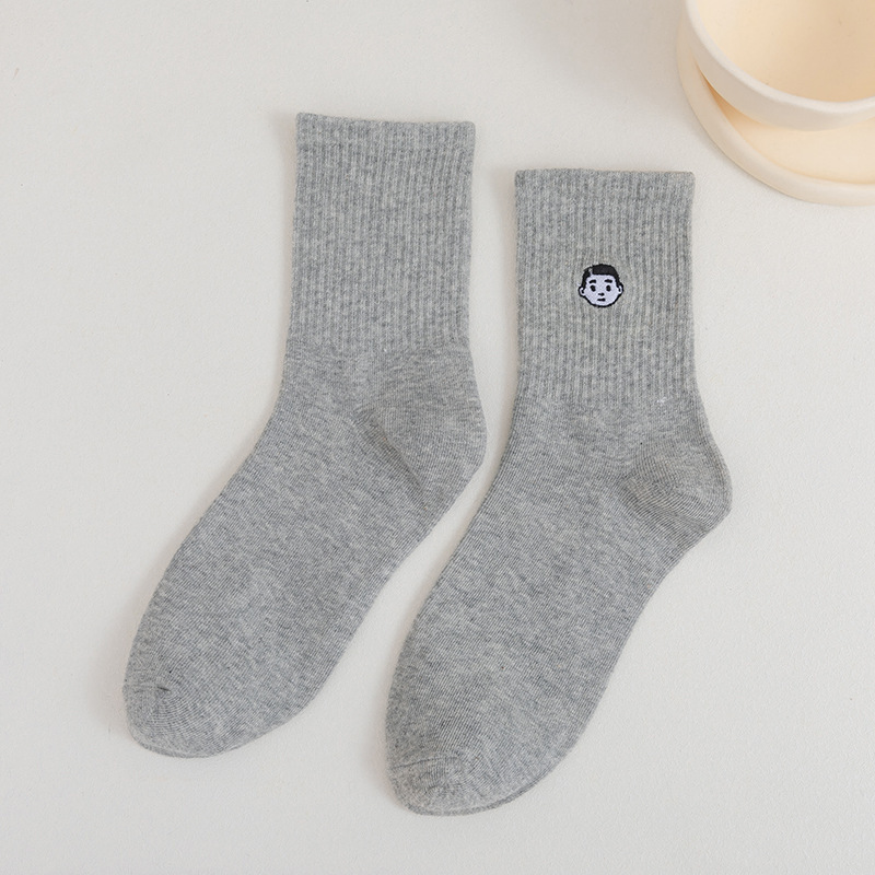 양말 남자 한국 작은 머리 만화 자수 스타킹 흑백 회색 봄과 가을 스포츠 스타킹 트렌디 한 올매치스토어 가기