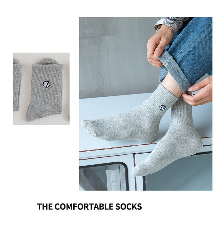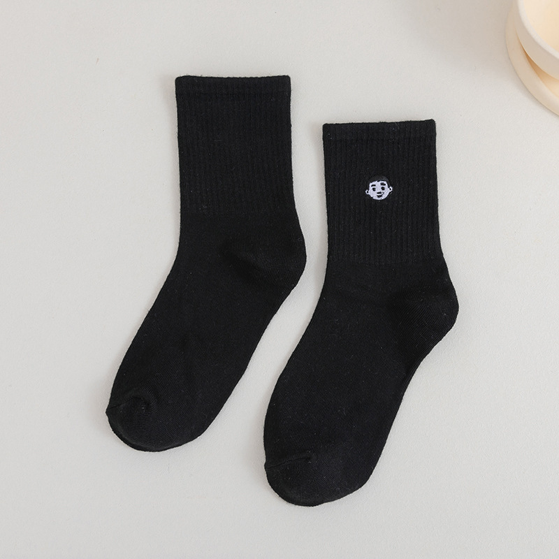 양말 남자 한국 작은 머리 만화 자수 스타킹 흑백 회색 봄과 가을 스포츠 스타킹 트렌디 한 올매치