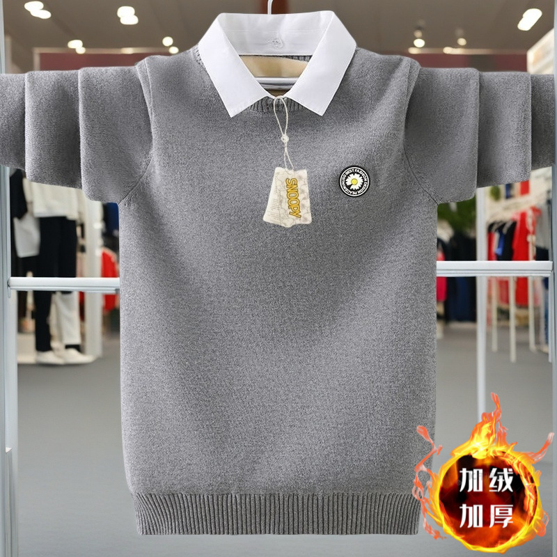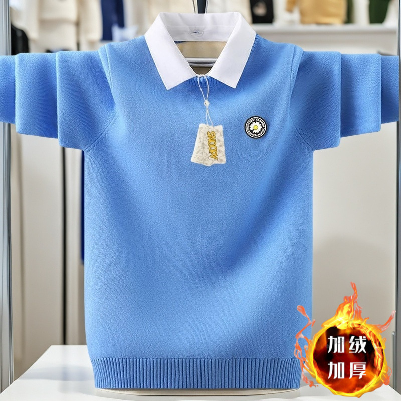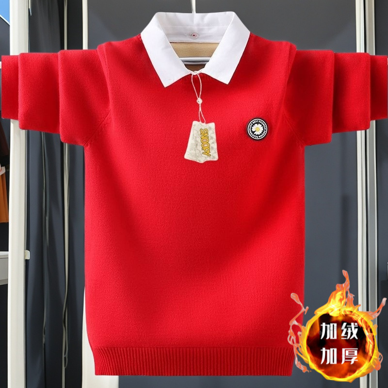 스누피 소년 순수 코튼 스웨터 2022 가을, 겨울 중형 및 대형 어린이 벨벳 바닥 셔츠 봄 어린이 셔츠 풀오버