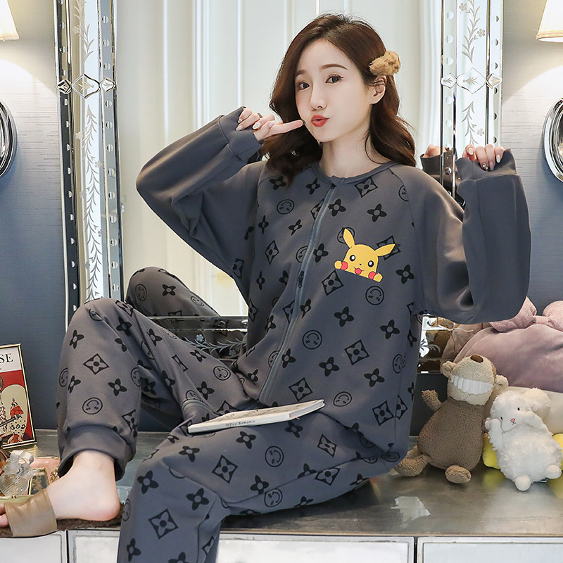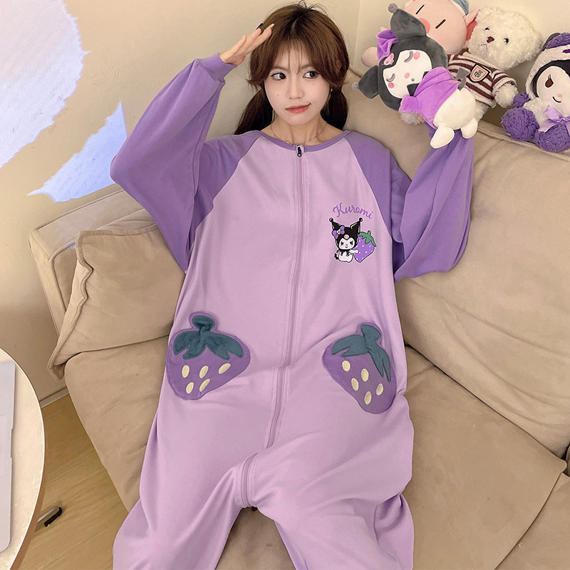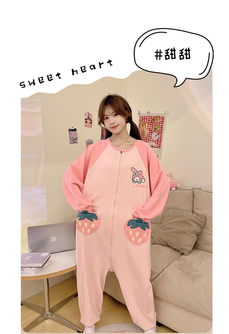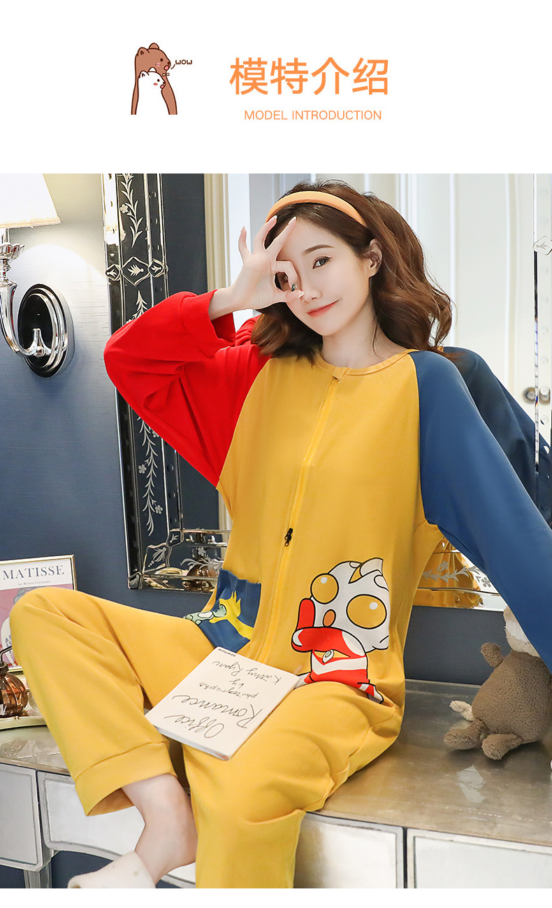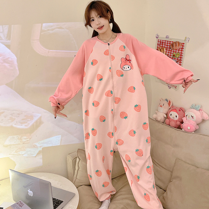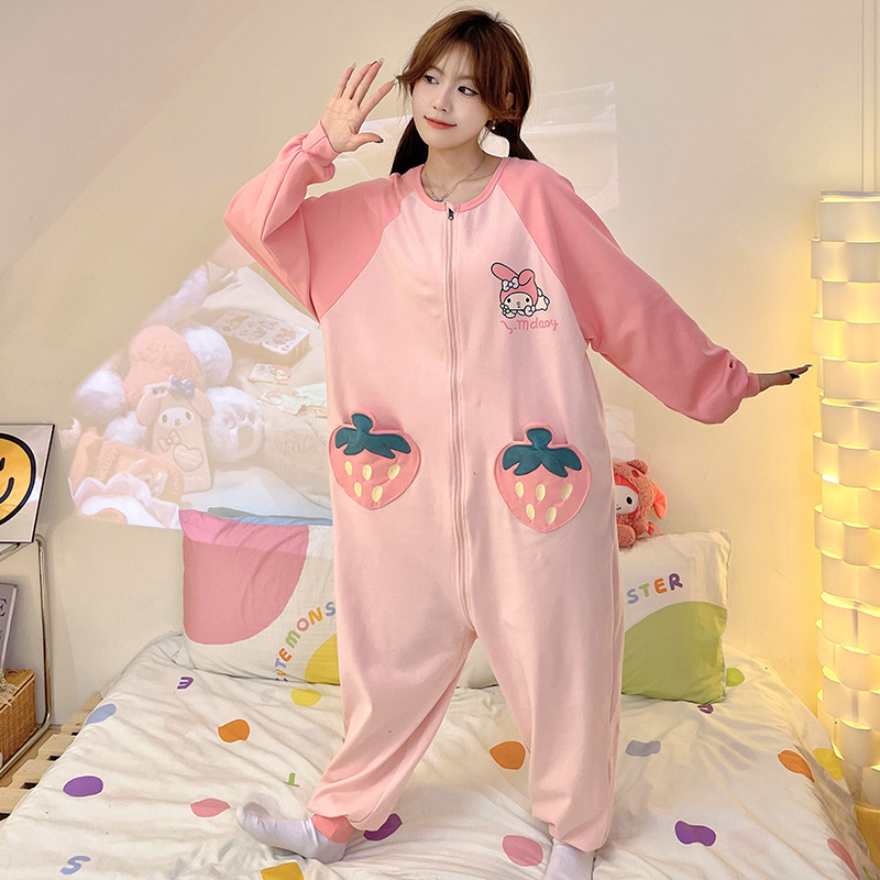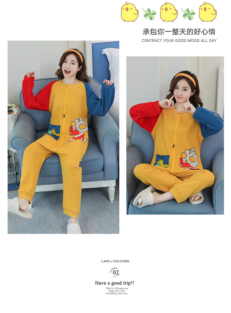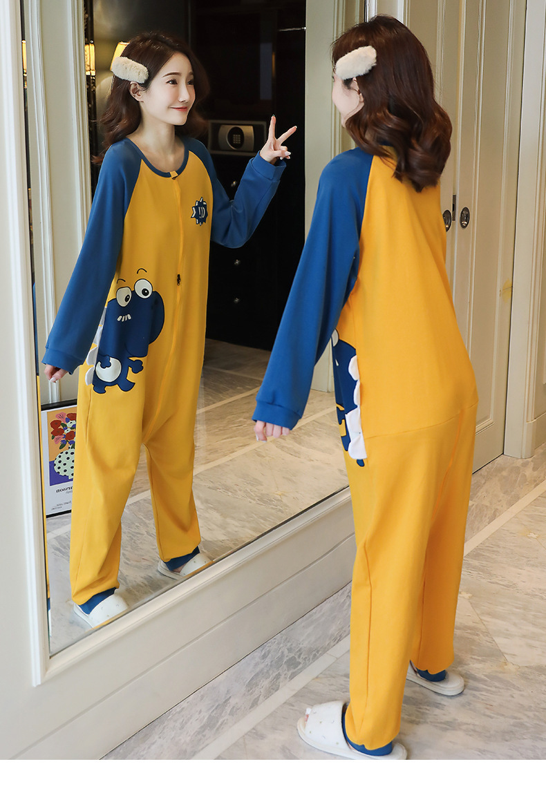 잠옷 여성의 봄과 가을면 긴 소매 성인 점프 수트 2024 새로운 귀여운 만화 소녀 학생 홈 옷스토어 가기