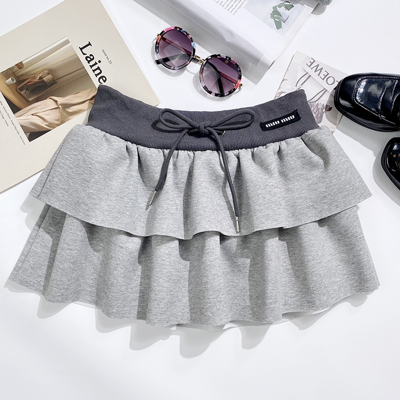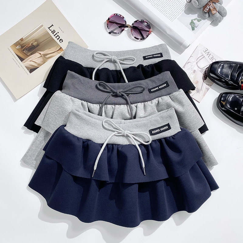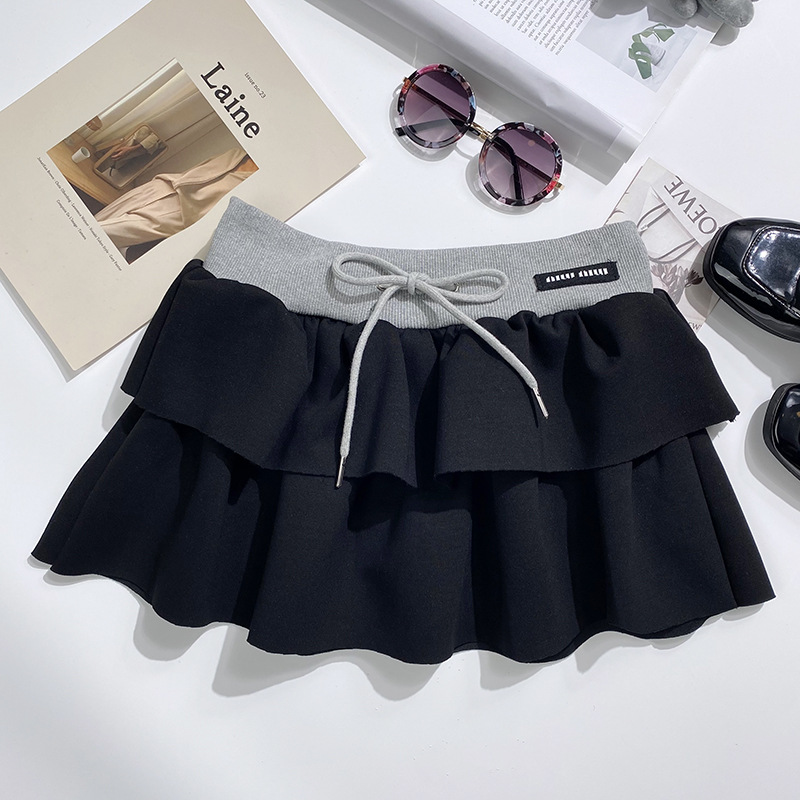 신축성 있는 허리밴드 이중 레이어 러플 케이크 스커트 여성 패션 다용도 슬림핏 배색 미니 스커트 9047스토어 가기