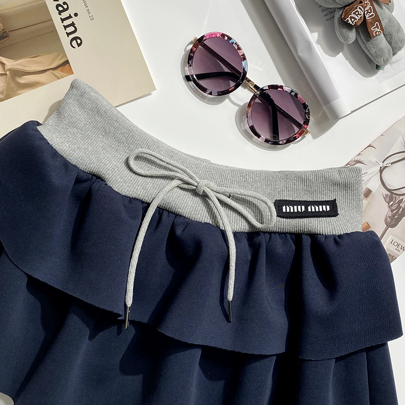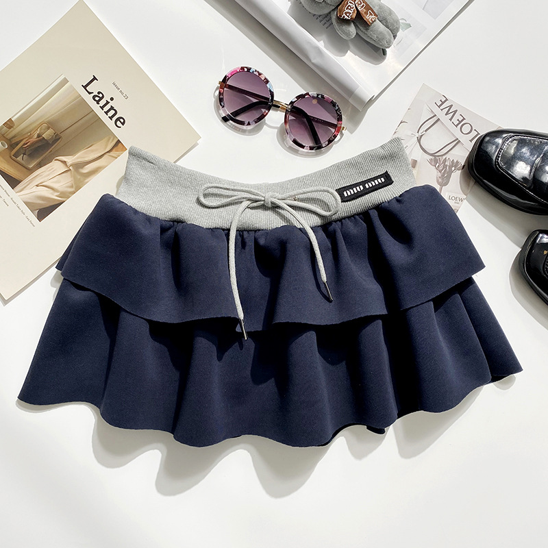 신축성 있는 허리밴드 이중 레이어 러플 케이크 스커트 여성 패션 다용도 슬림핏 배색 미니 스커트 9047