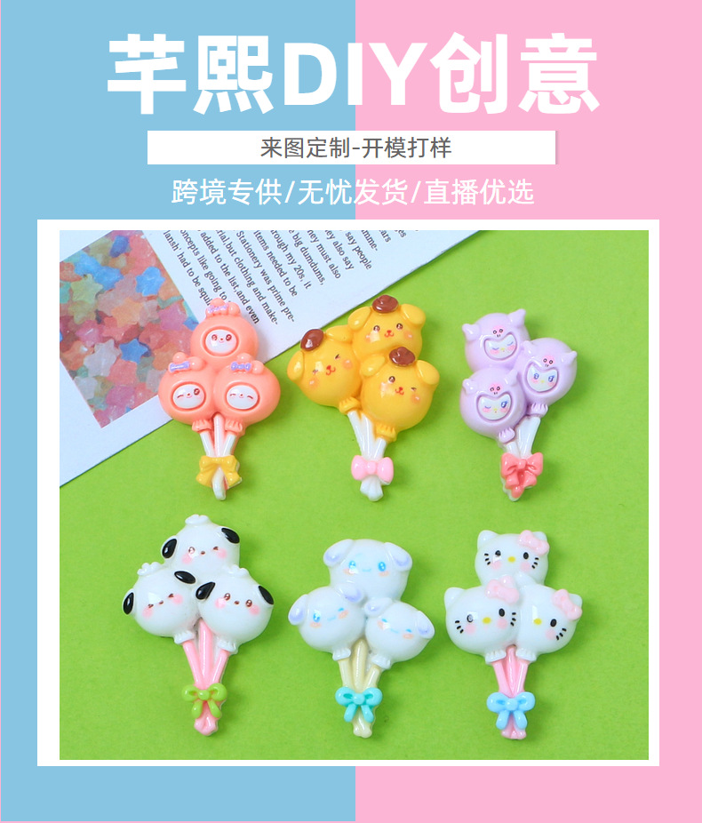 귀여운 풍선 만화 크림 접착제 액세서리 창조적 인 신발 버클 소재 수지 액세서리 diy 보석 머리핀 도매