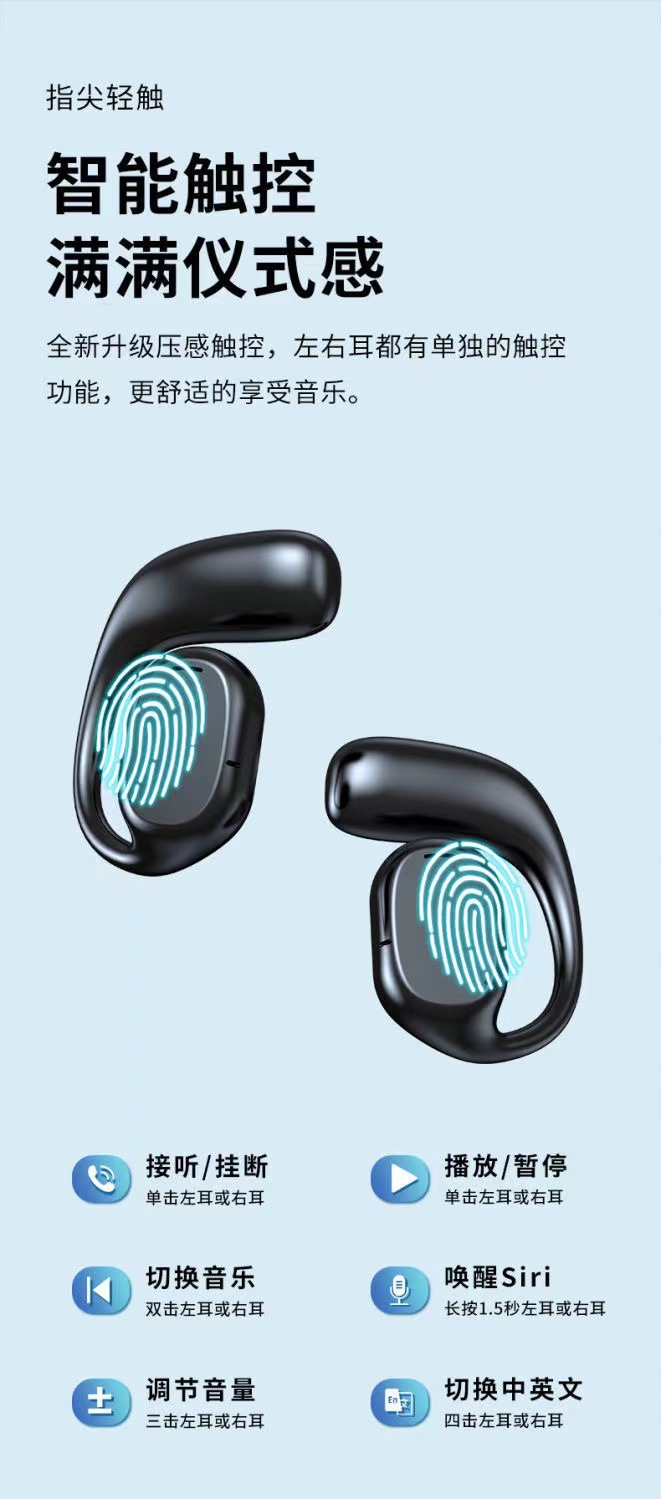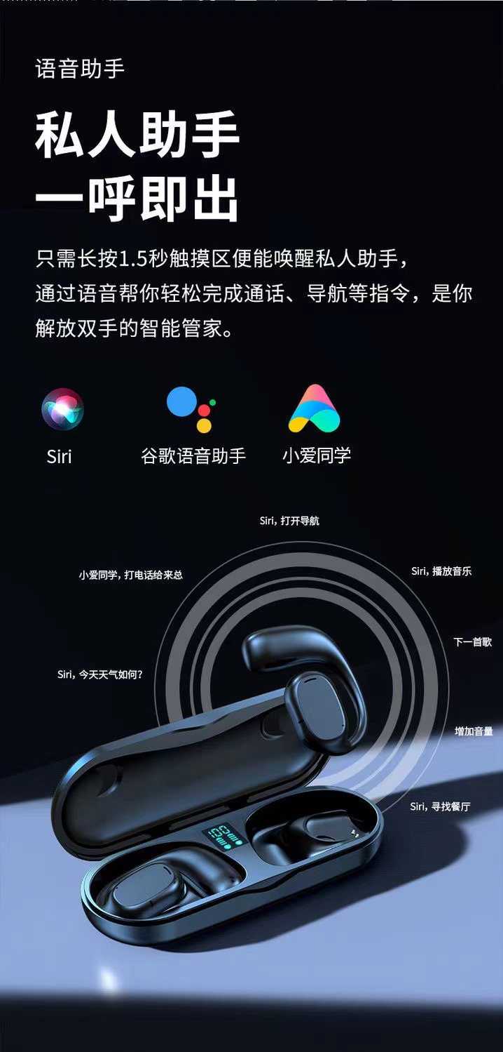 귀 아닌 블루투스 헤드셋 실제 무선 스포츠 귀에 매달려 지능형 디지털 디스플레이 슈퍼 긴 내구성 달리기 노래 듣기 높은 음질