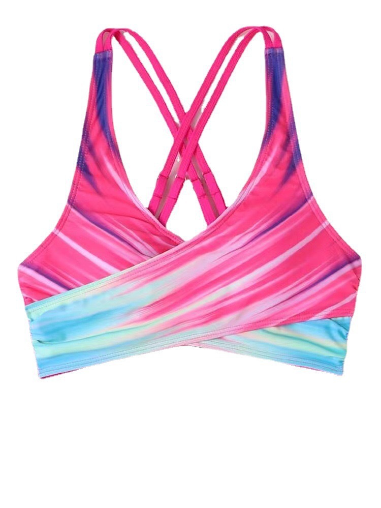 2024 새로운 대외 무역 수영복 버전 인쇄 크로스 무지개 높은 허리 섹시한 비키니 머리 세대