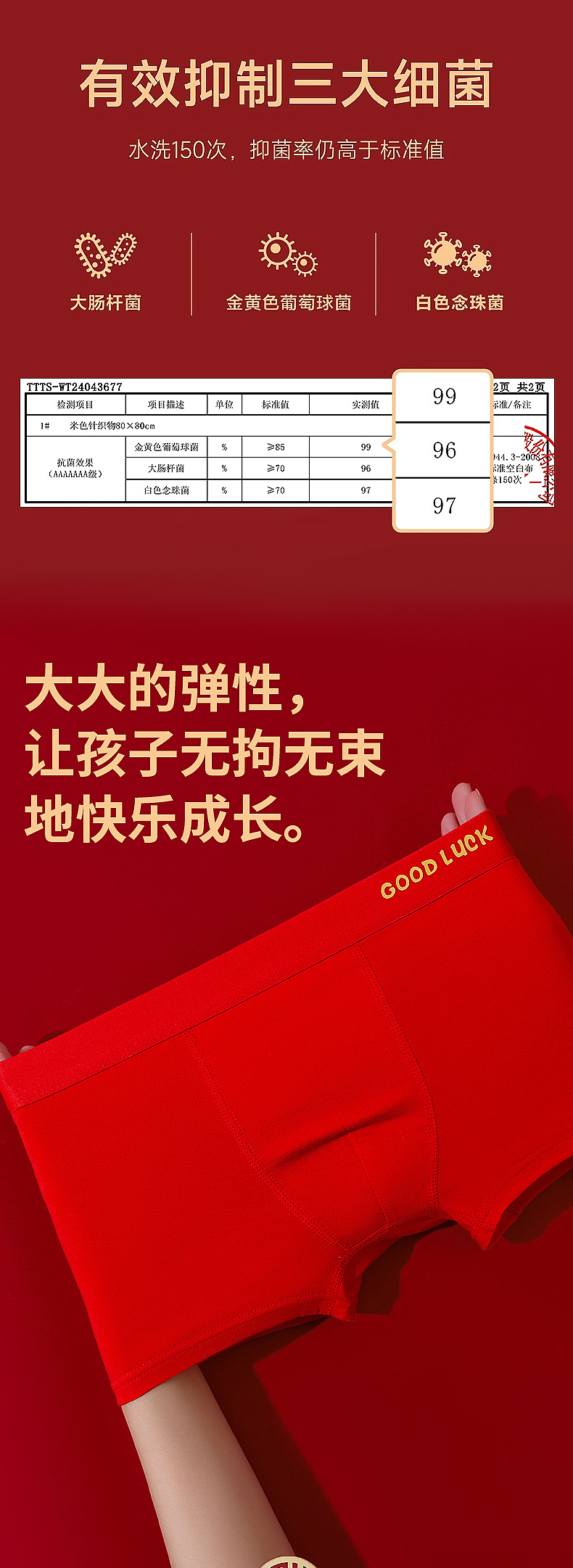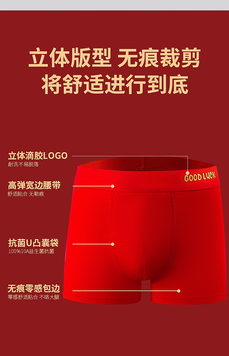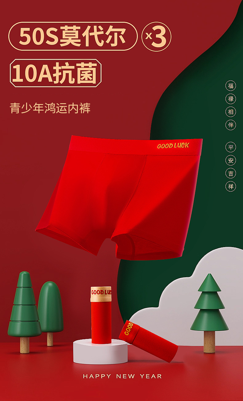 어린이용 속옷 A급 10A 항균 모달 코튼 레드 남아 사각팬티 생일/새해 남아용 사각팬티