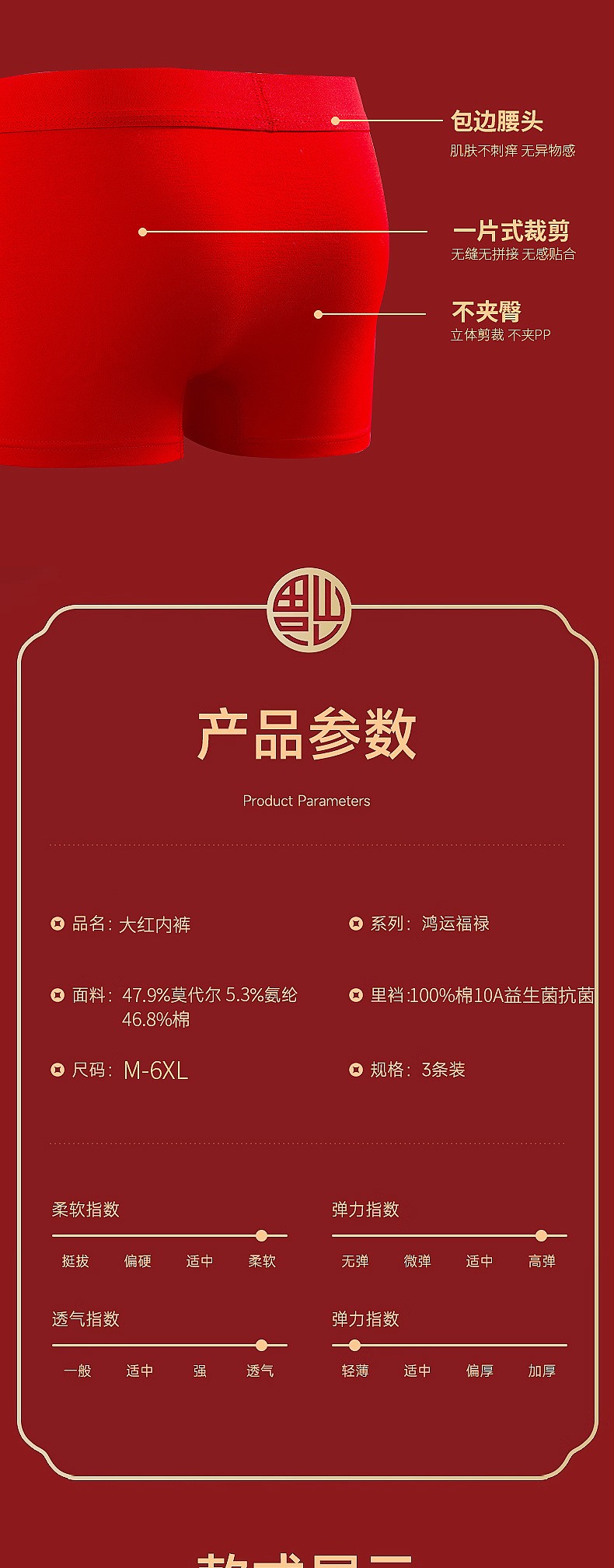 어린이용 속옷 A급 10A 항균 모달 코튼 레드 남아 사각팬티 생일/새해 남아용 사각팬티스토어 가기