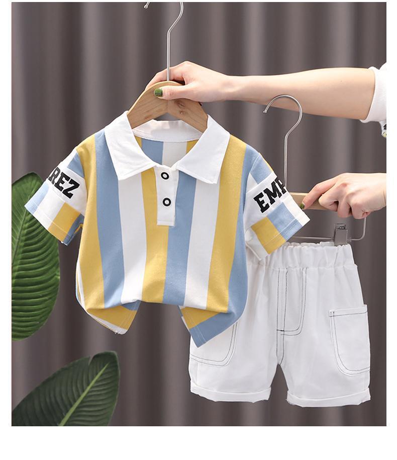 • 노란색 흰색 파란색 짧은 소매 세트