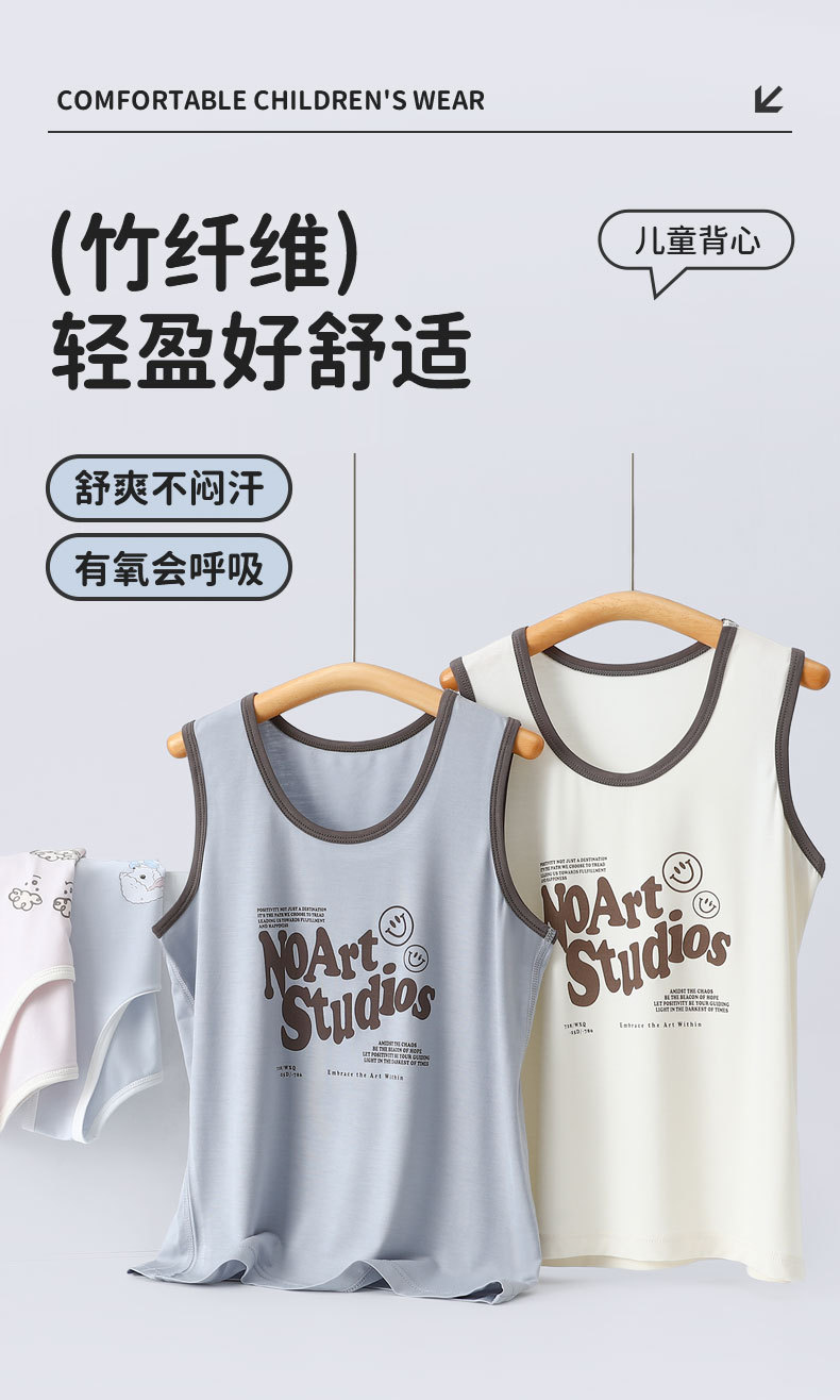 아동용 여름 조끼, 남아용 캐주얼 셔츠, 중대형 아동용 한국 스타일 멜빵 셔츠, 학생용 아기용 대나무 섬유 베이스 셔츠, 민소매스토어 가기