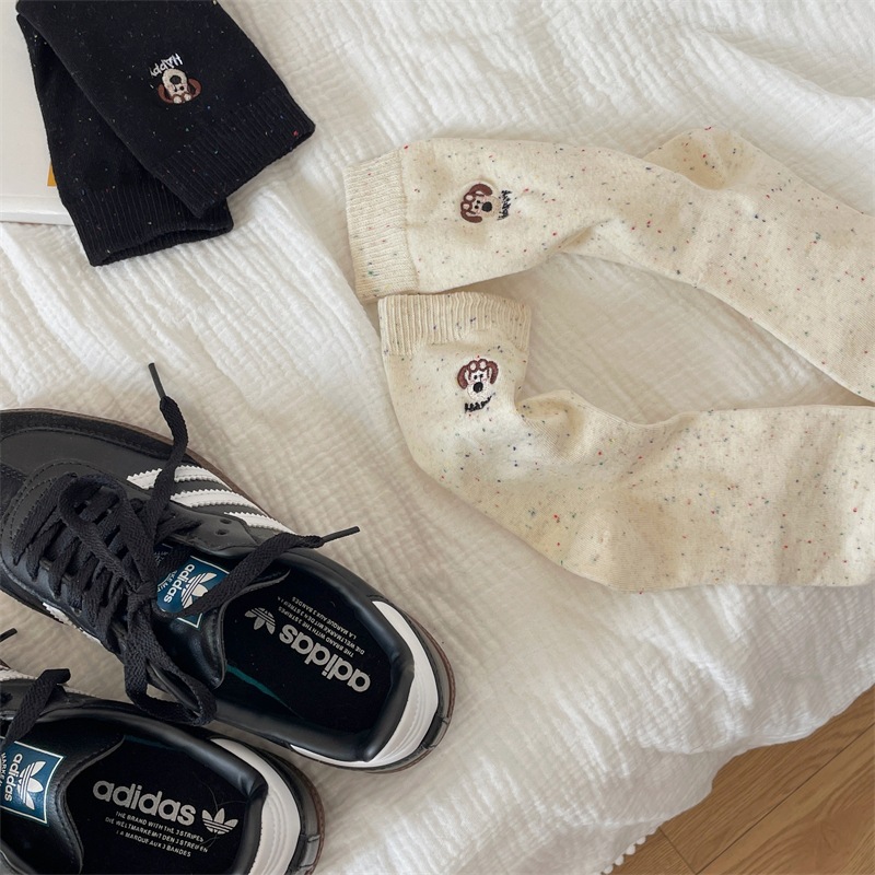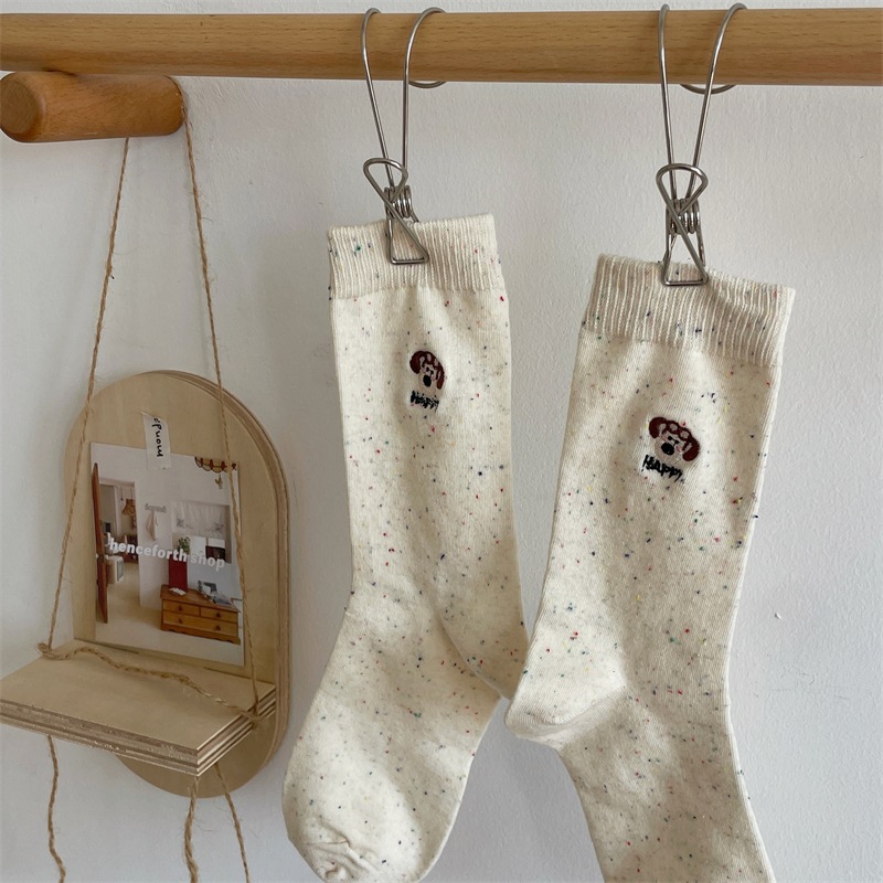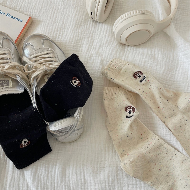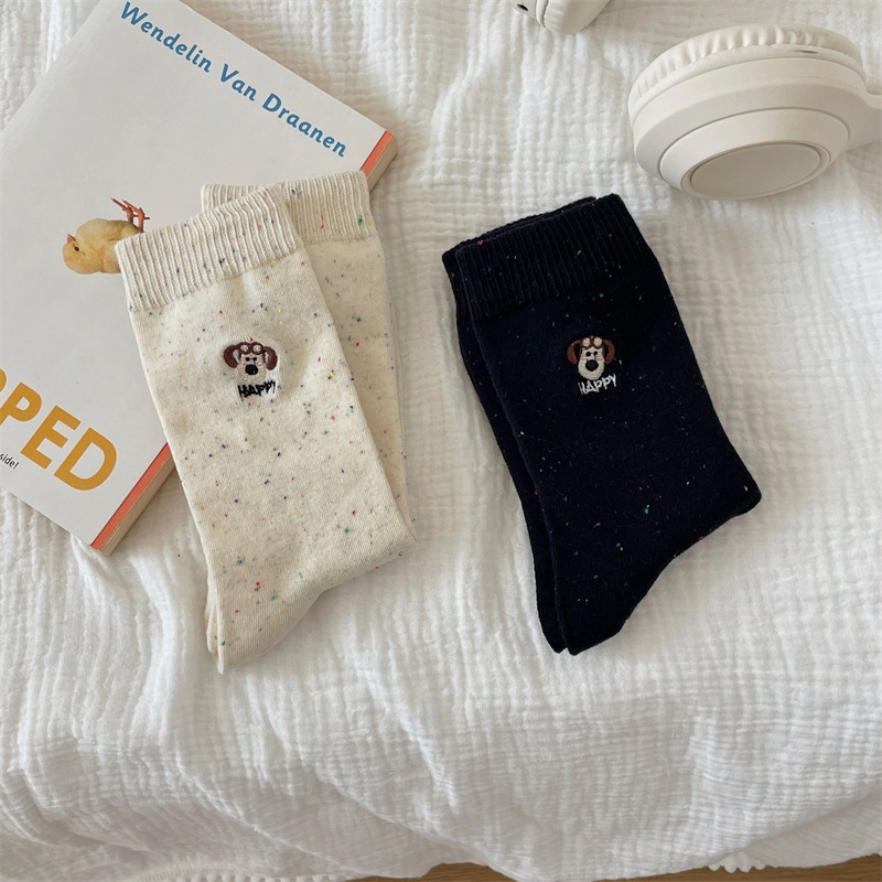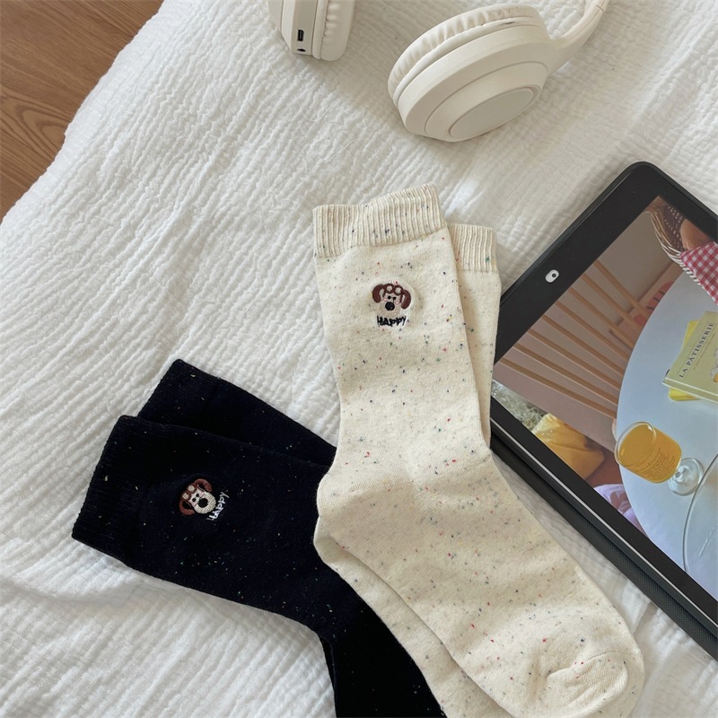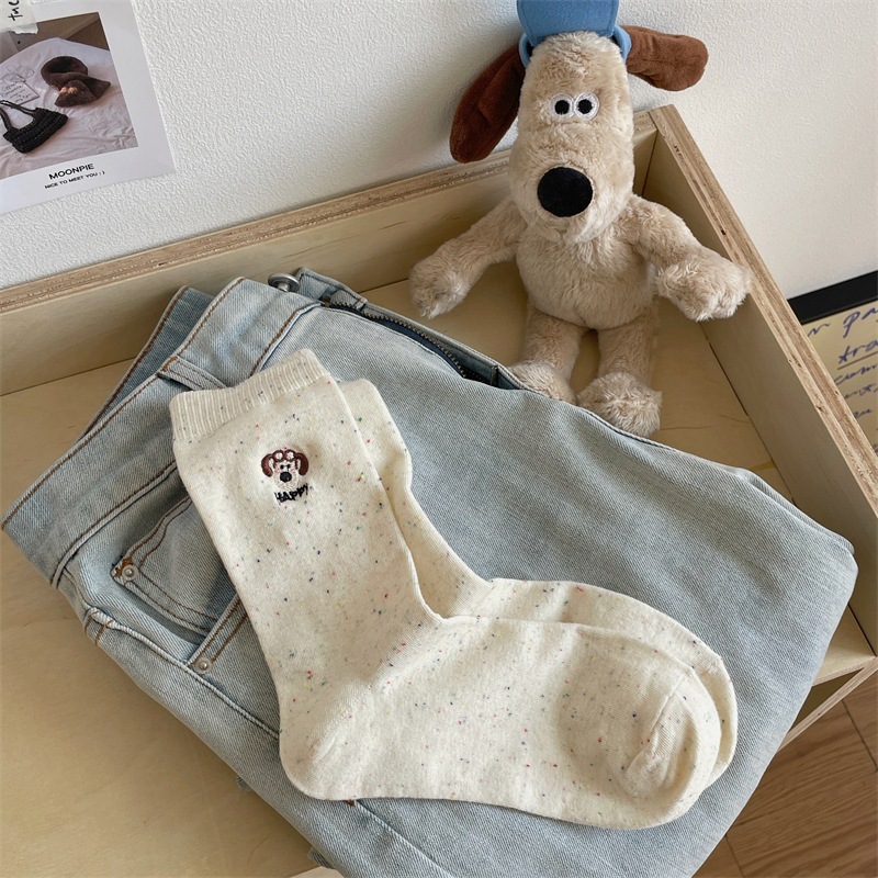 한국 I 포인트 원사 강아지 자수 귀여운 양말 남녀 만화 항공기 개 면화 양말 쌓여 양말 여성