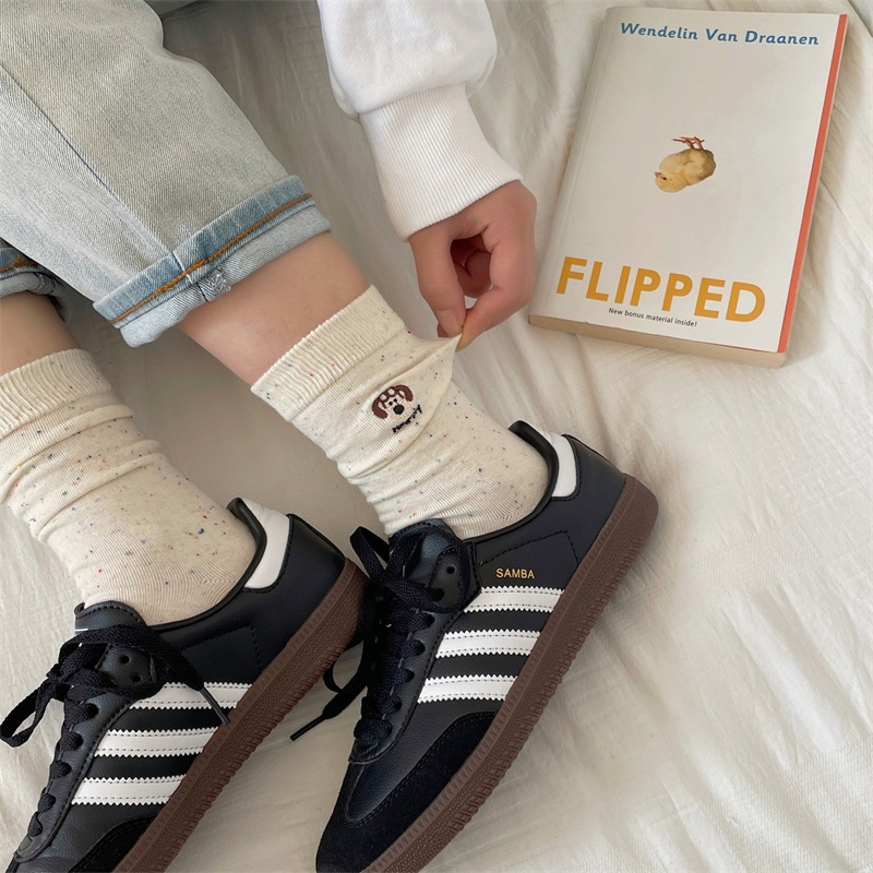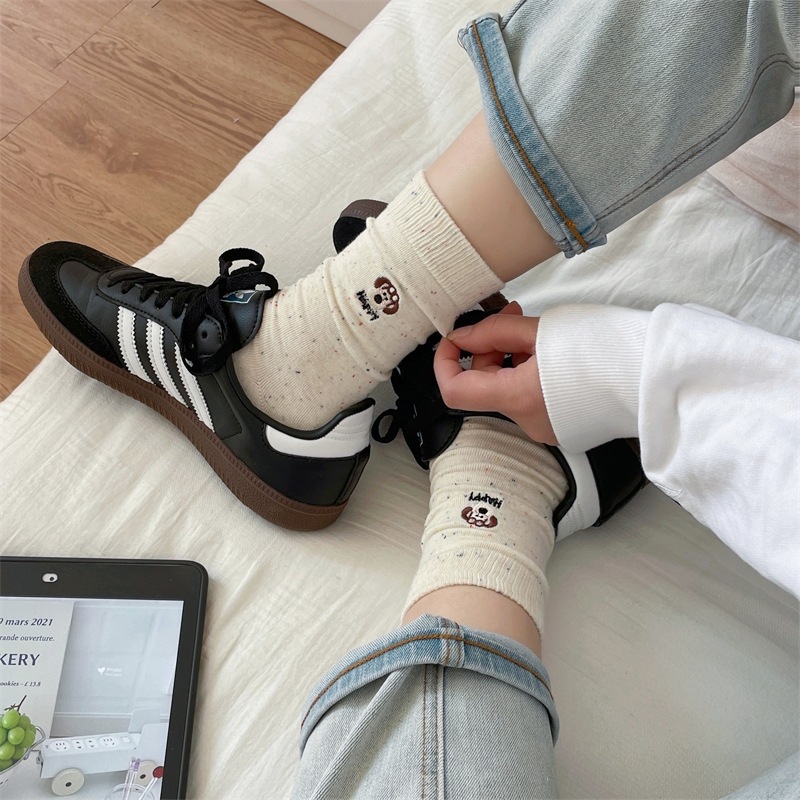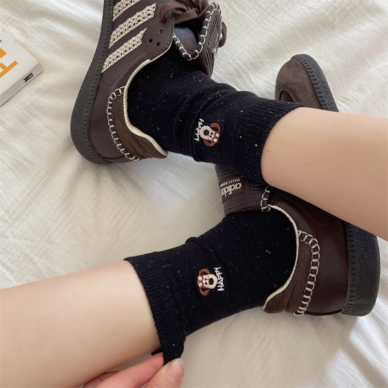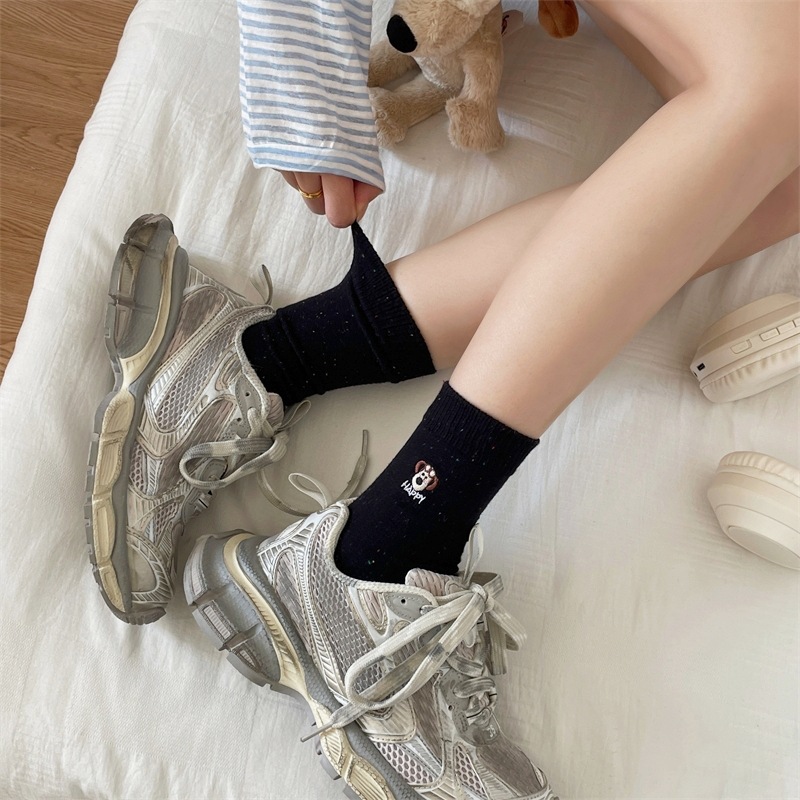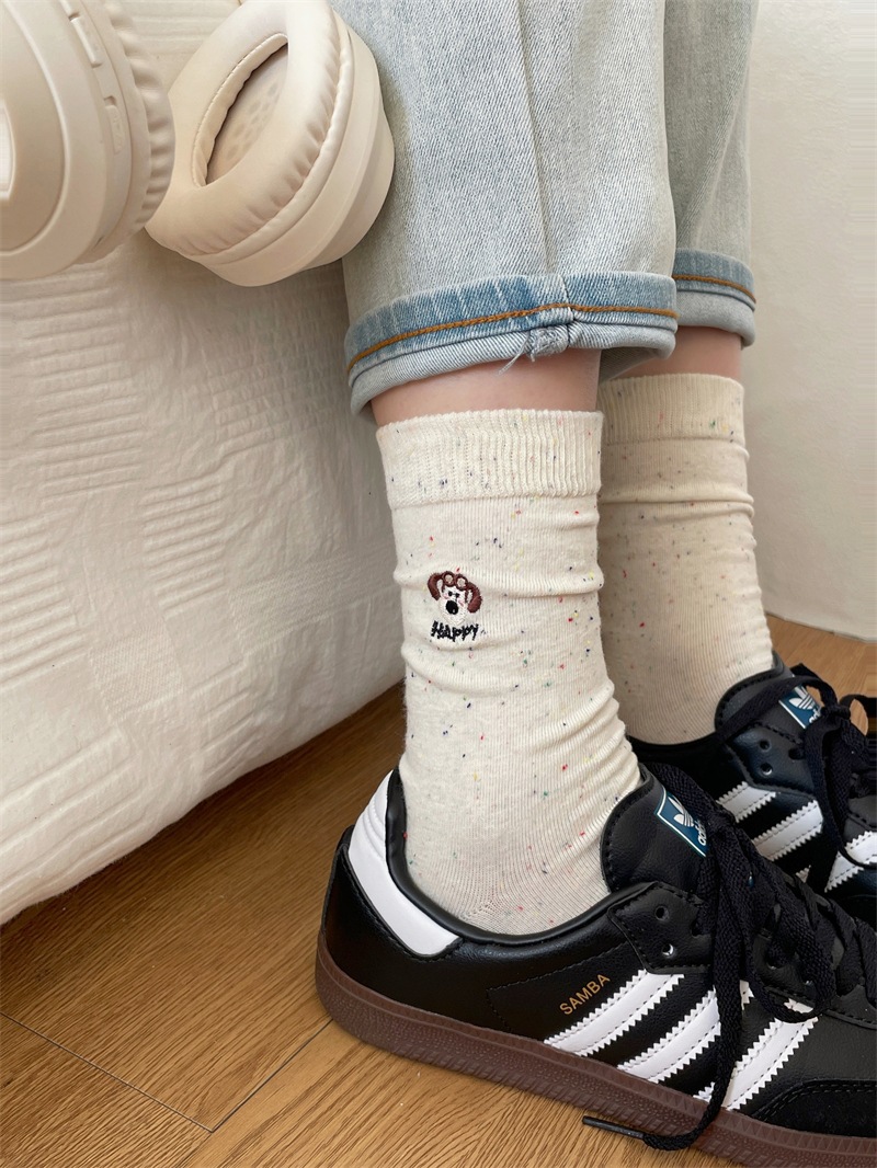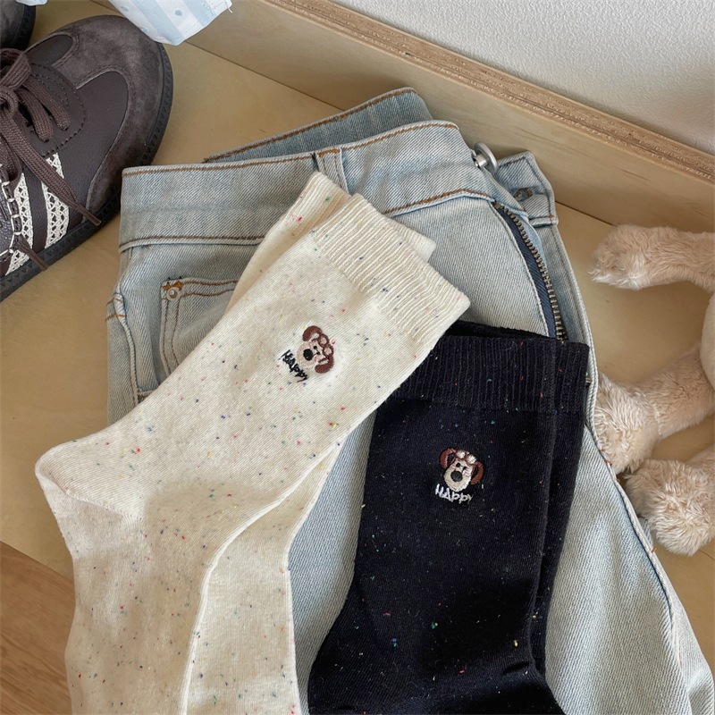 한국 I 포인트 원사 강아지 자수 귀여운 양말 남녀 만화 항공기 개 면화 양말 쌓여 양말 여성
