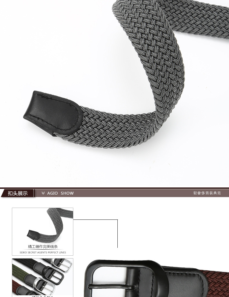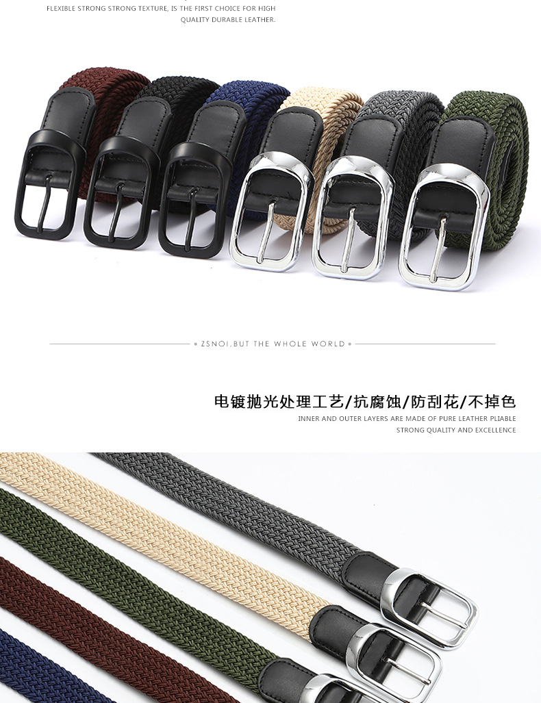 3.4CM 핀 버클 편안한 브레이드 탄성 벨트 남녀공용 한국 스타일 캐주얼 다용도 골프 벨트 남성용