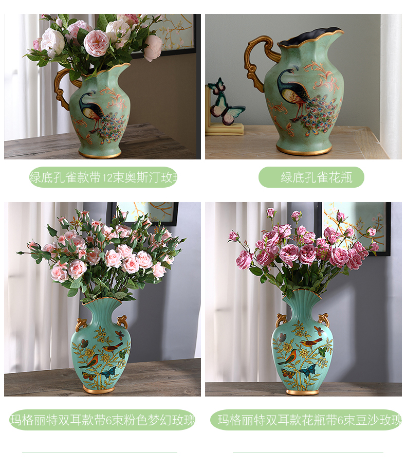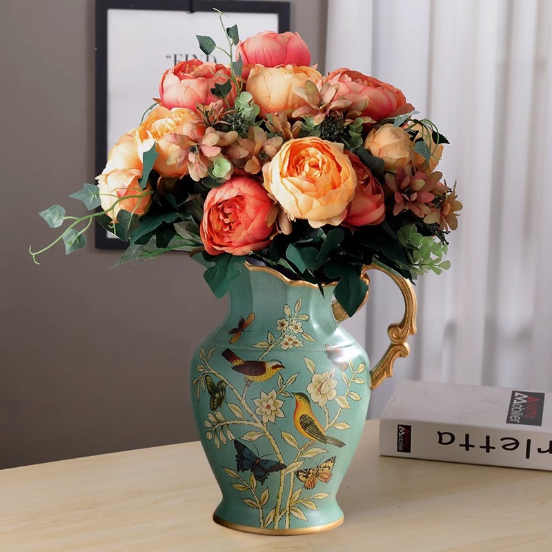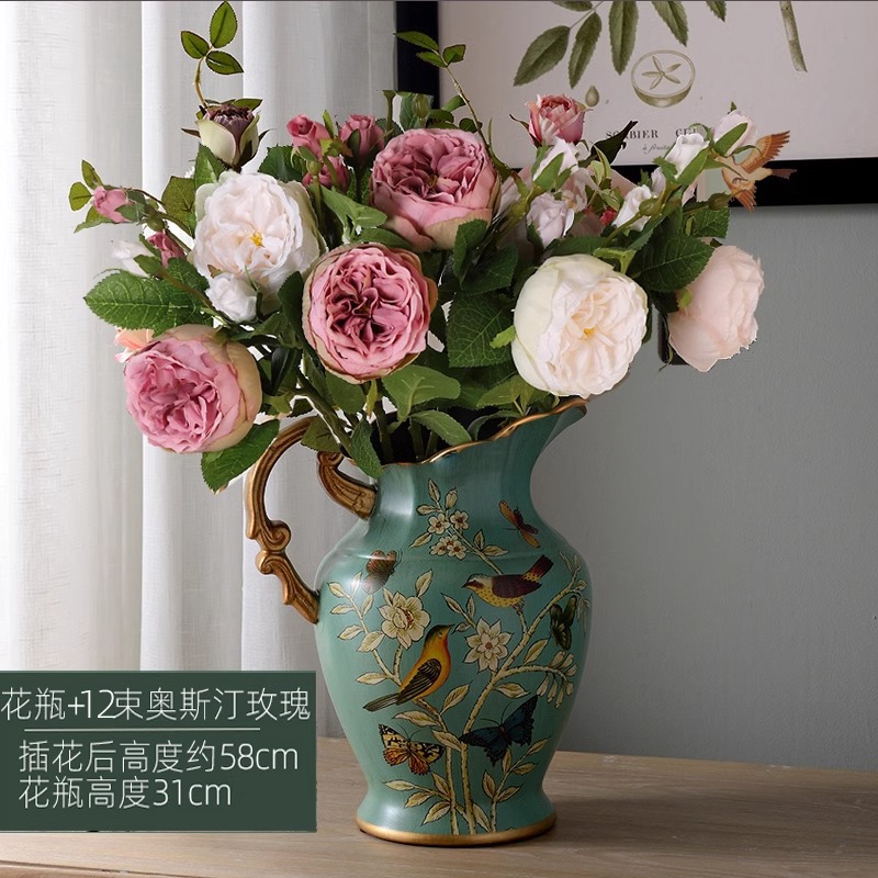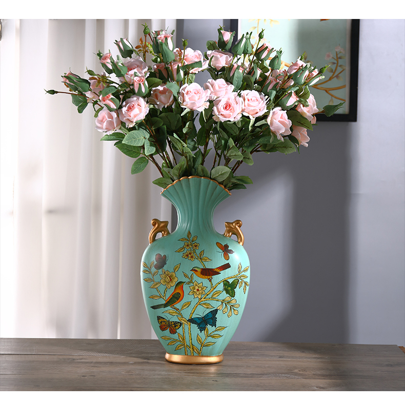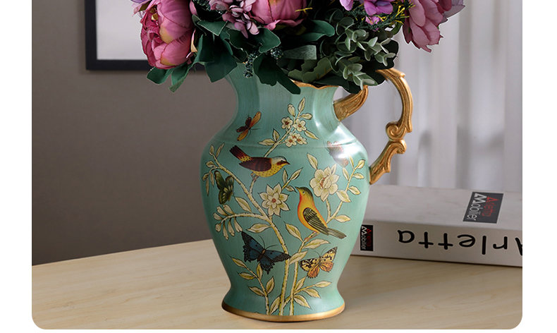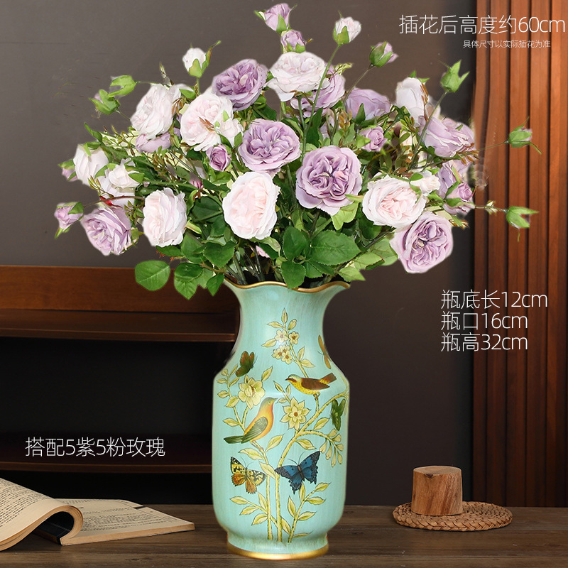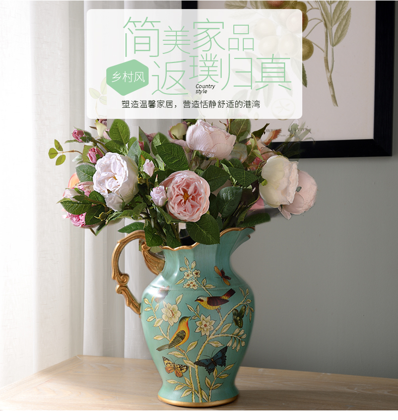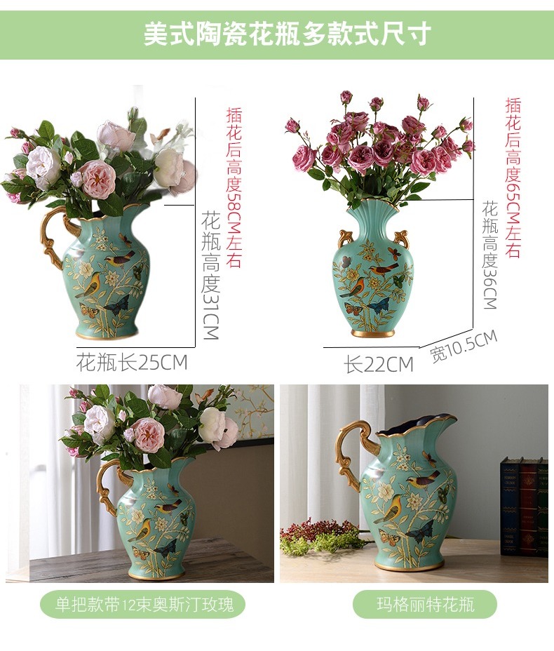 미국식 세라믹 꽃병 빈티지 장식품 거실 꽃 배열 홈 장식 꽃 인공 꽃 공예 장식