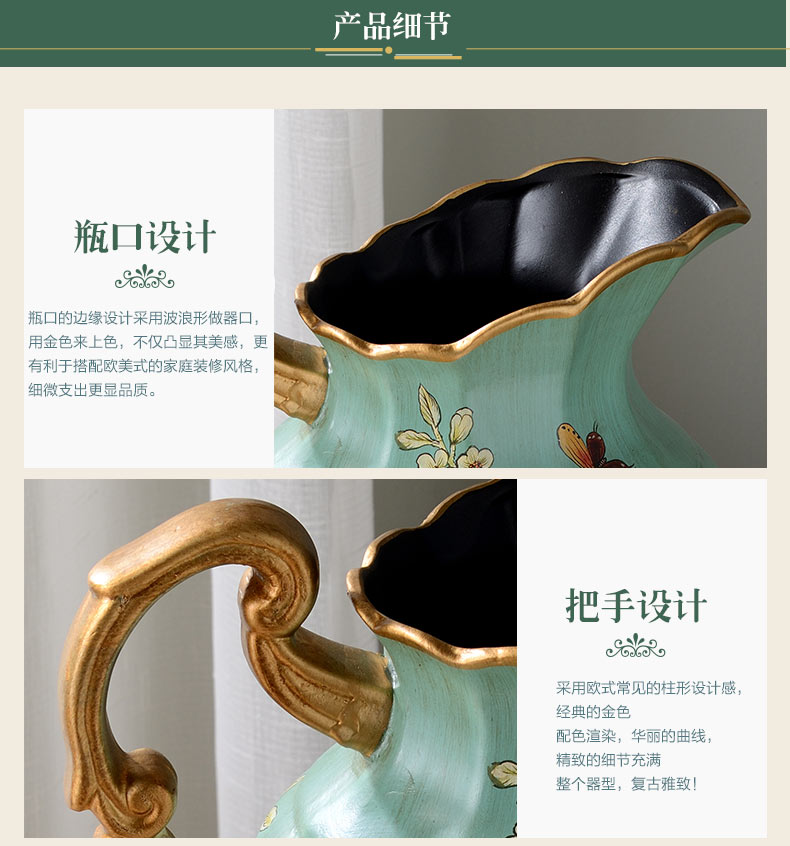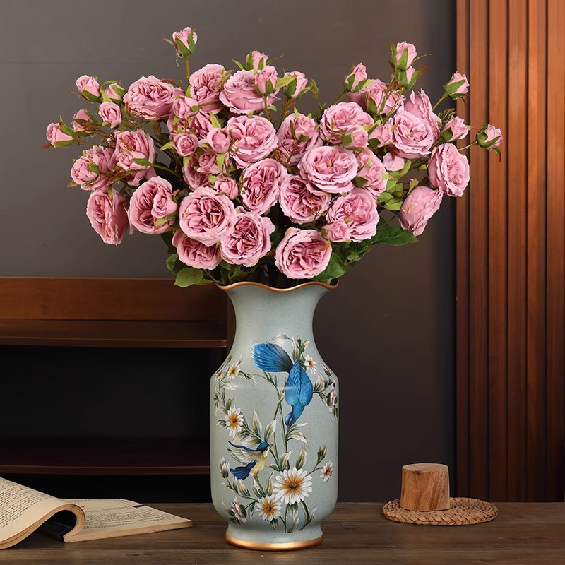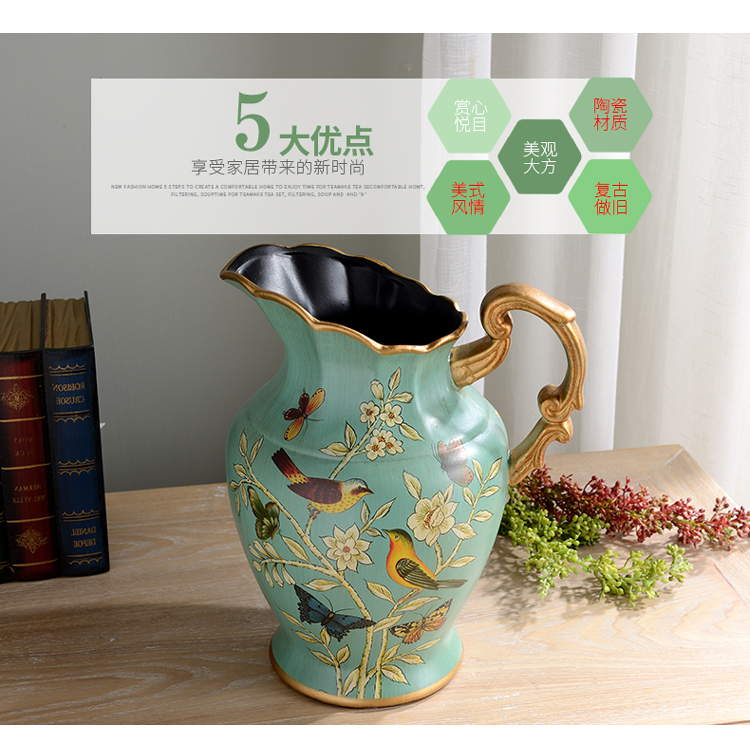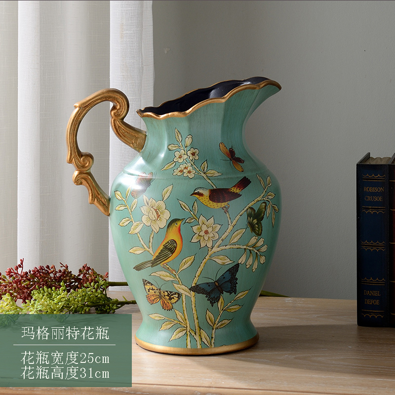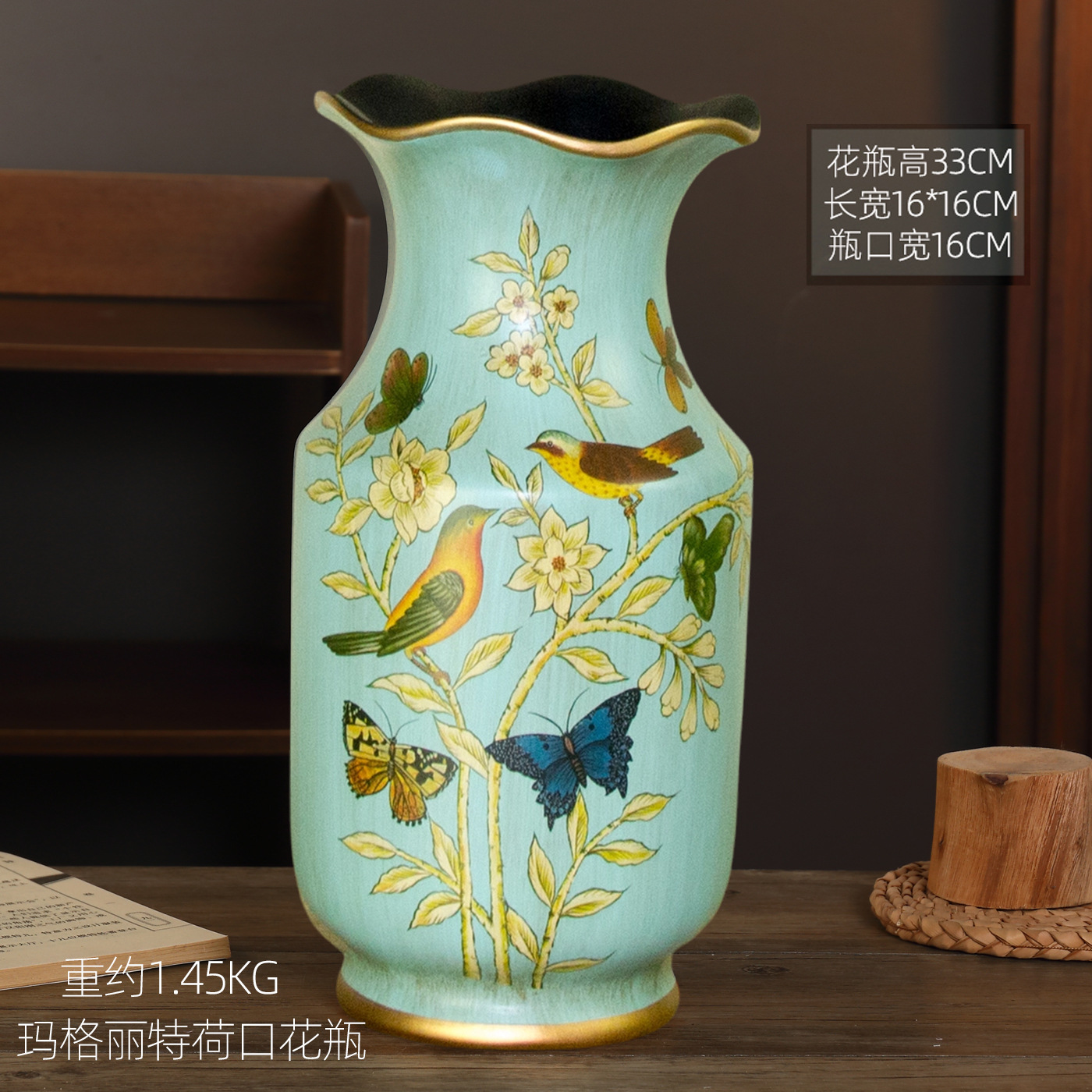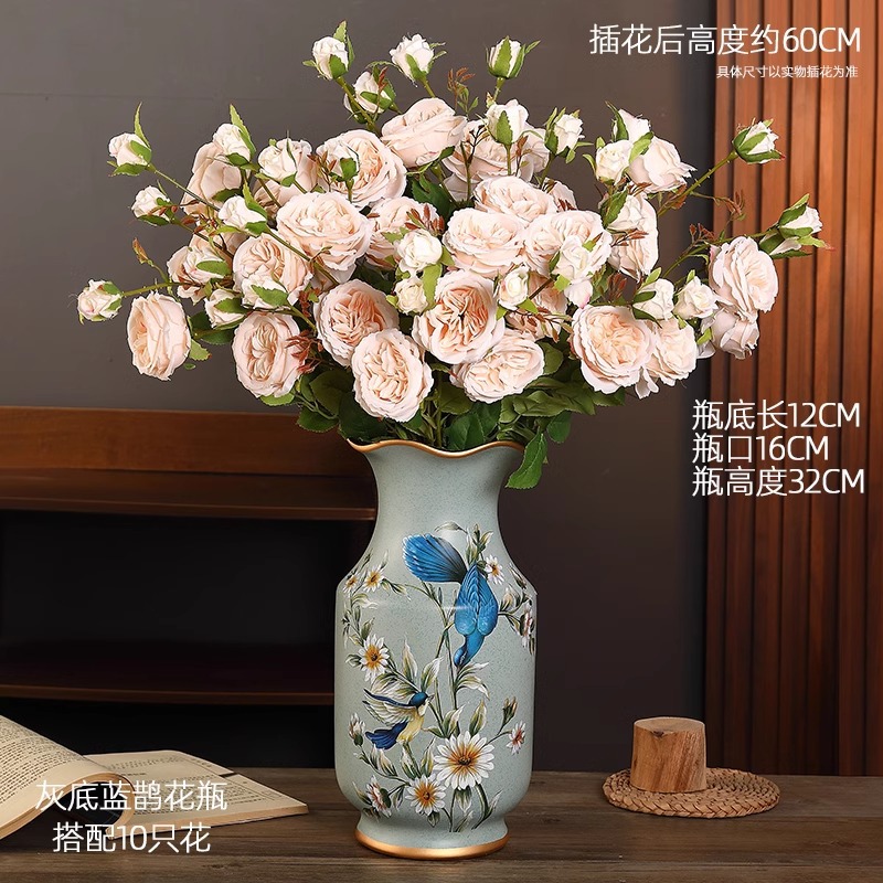 미국식 세라믹 꽃병 빈티지 장식품 거실 꽃 배열 홈 장식 꽃 인공 꽃 공예 장식