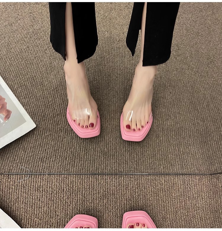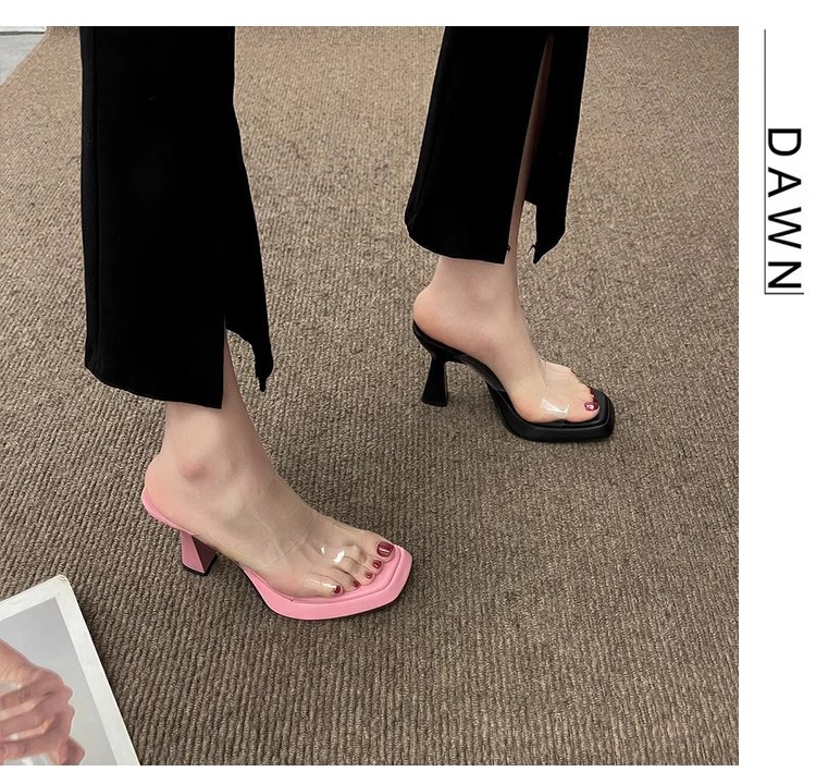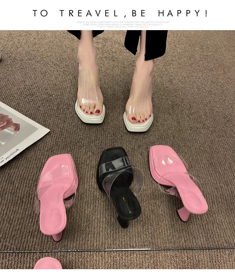 팬 Jieya 하이힐 투명 슬리퍼 여성의 2024 년 여름 새로운 고급 인터넷 인기 슈퍼 파이어 페어리 스타일 샌들스토어 가기