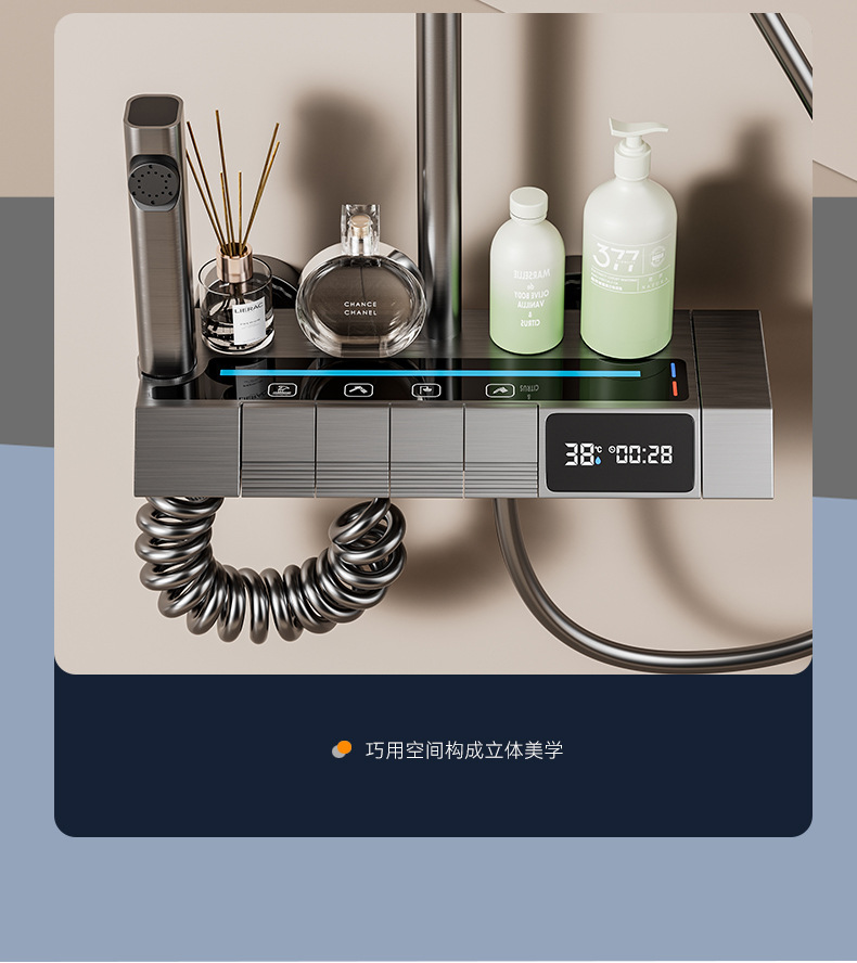 욕실 비 총 회색 샤워 호텔 샤워 전체 디지털 디스플레이 분위기 램프 샤워 세트 도매스토어 가기