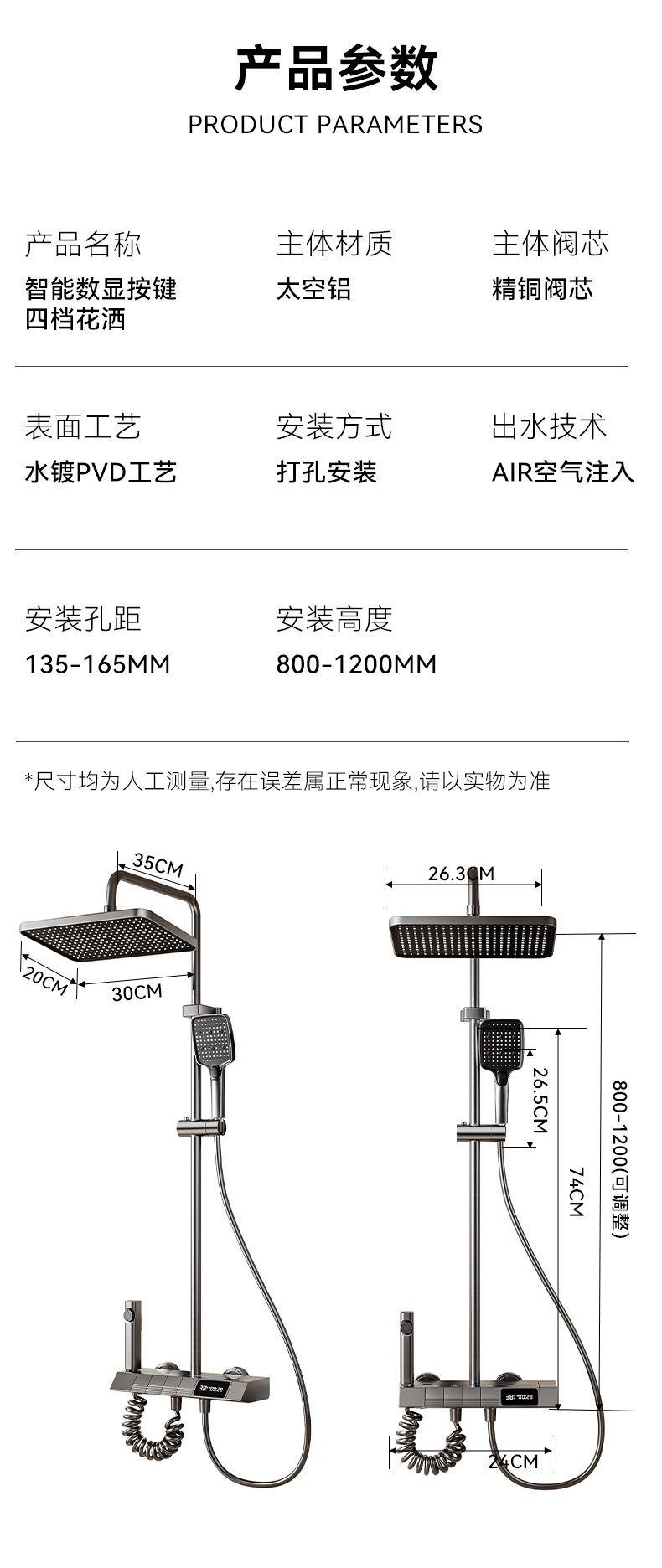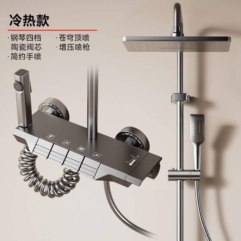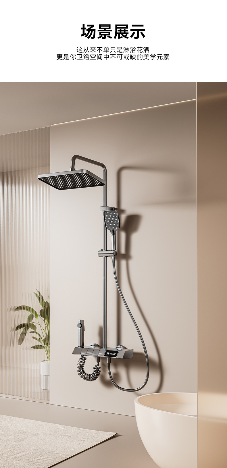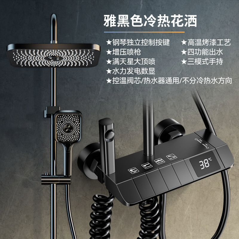 花洒套装恒温淋浴数显卫生间浴室淋雨浴室全铜沐浴增压花洒喷头暗装钢琴花洒全套带氛围灯