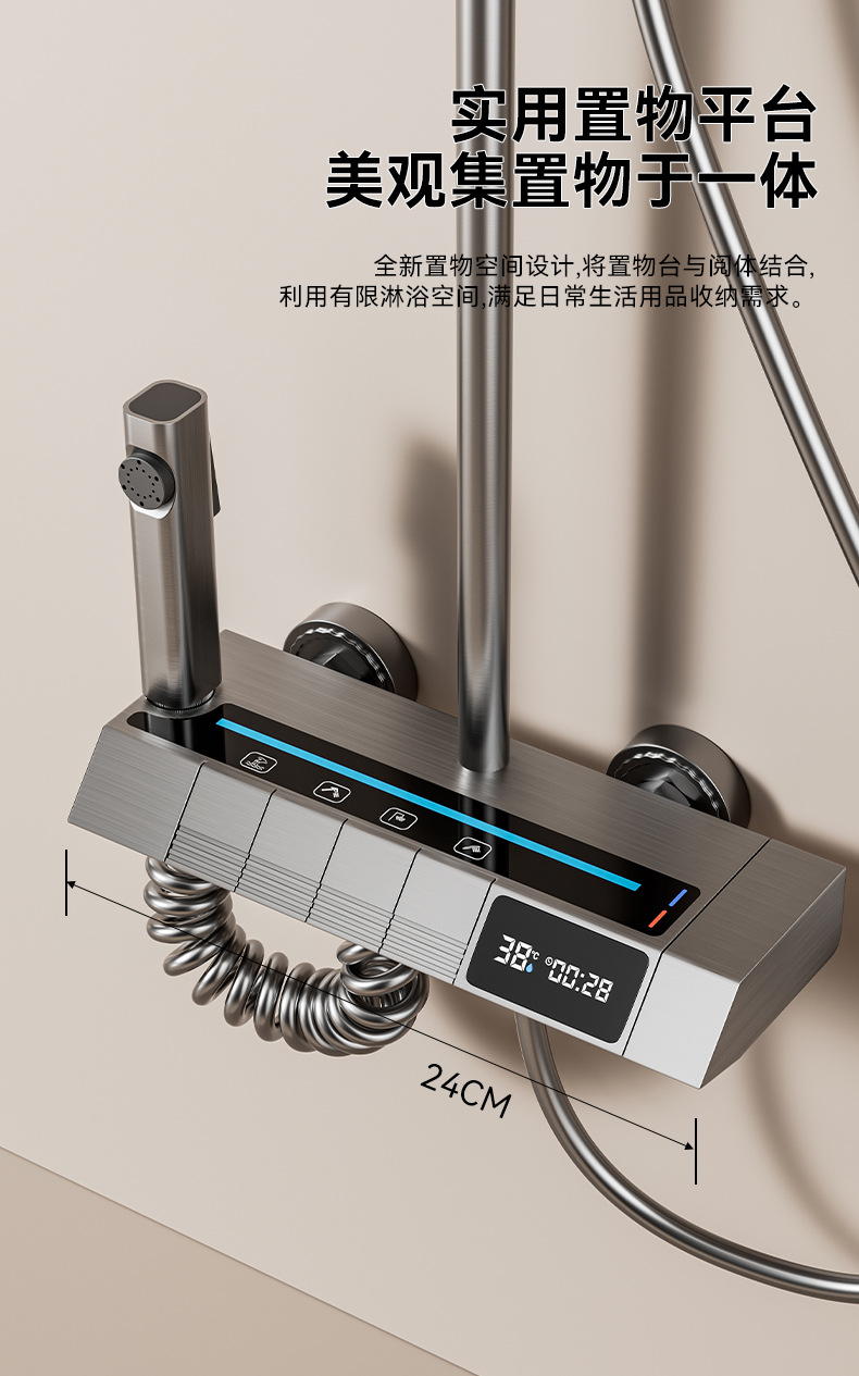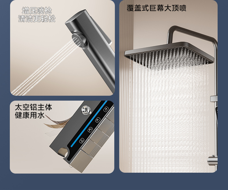 욕실 비 총 회색 샤워 호텔 샤워 전체 디지털 디스플레이 분위기 램프 샤워 세트 도매