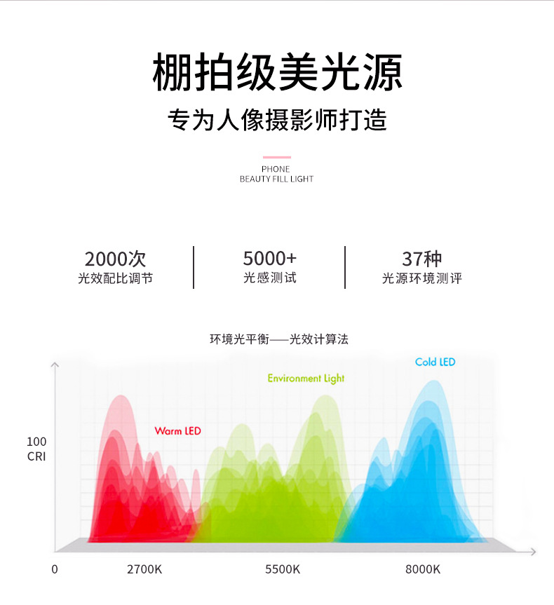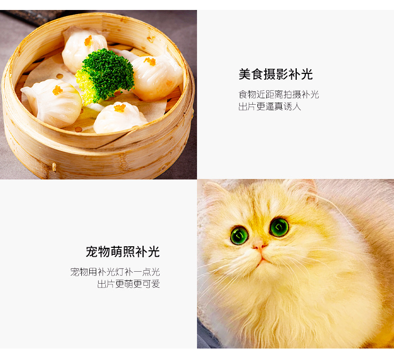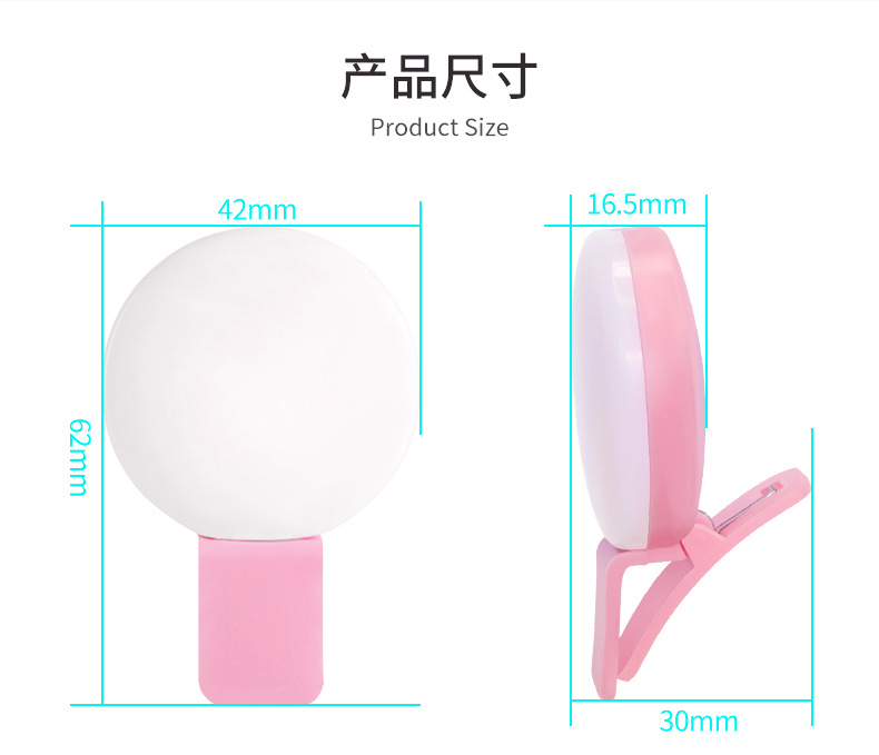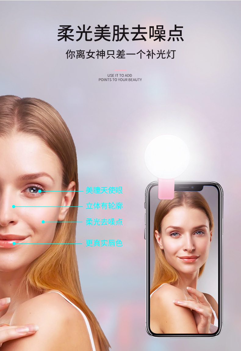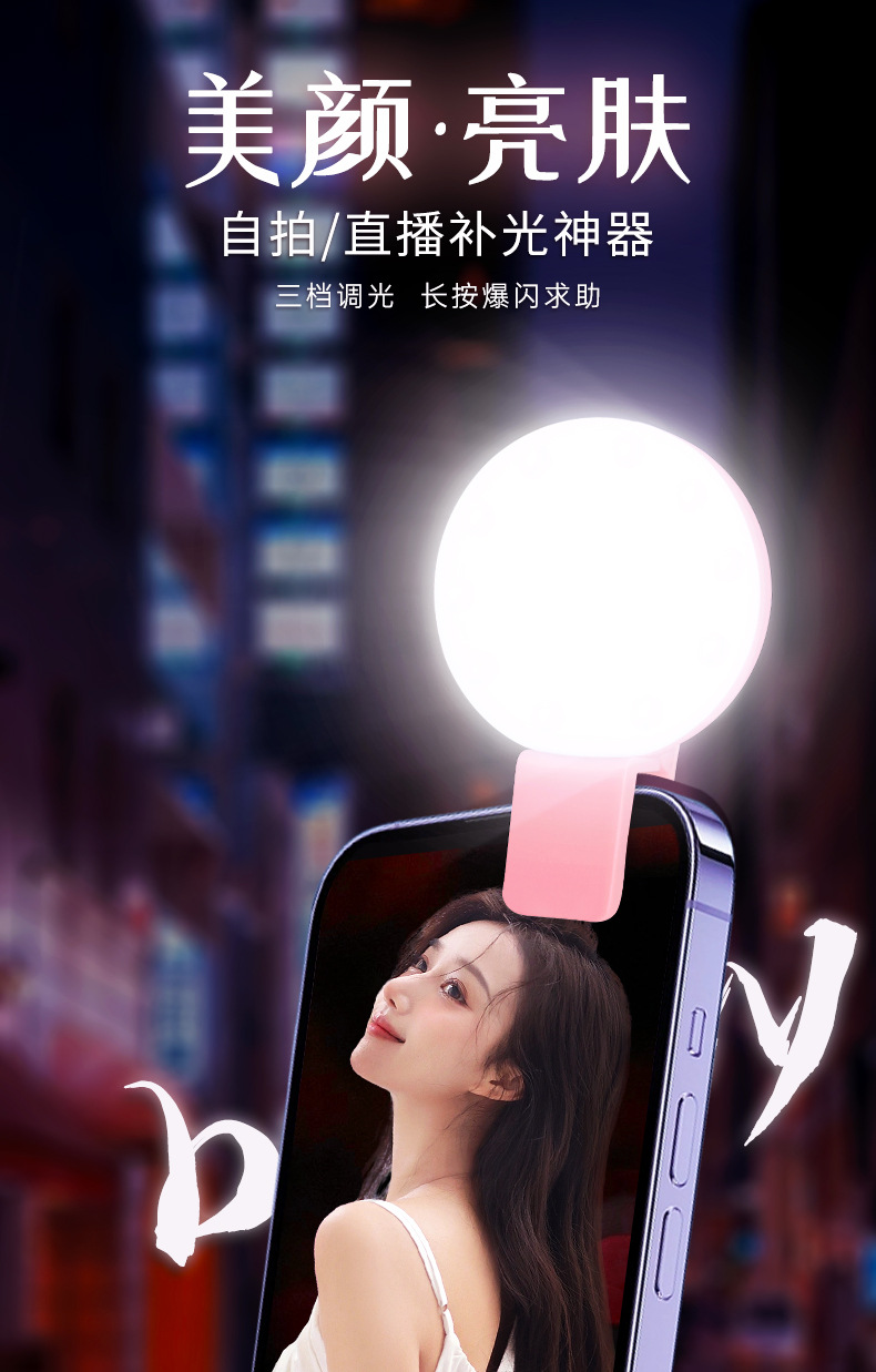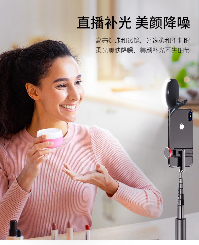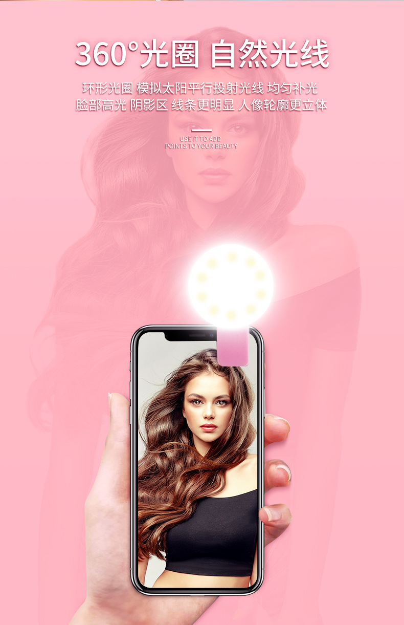 【产品包装】:中性英文彩盒+补光灯+充电线
