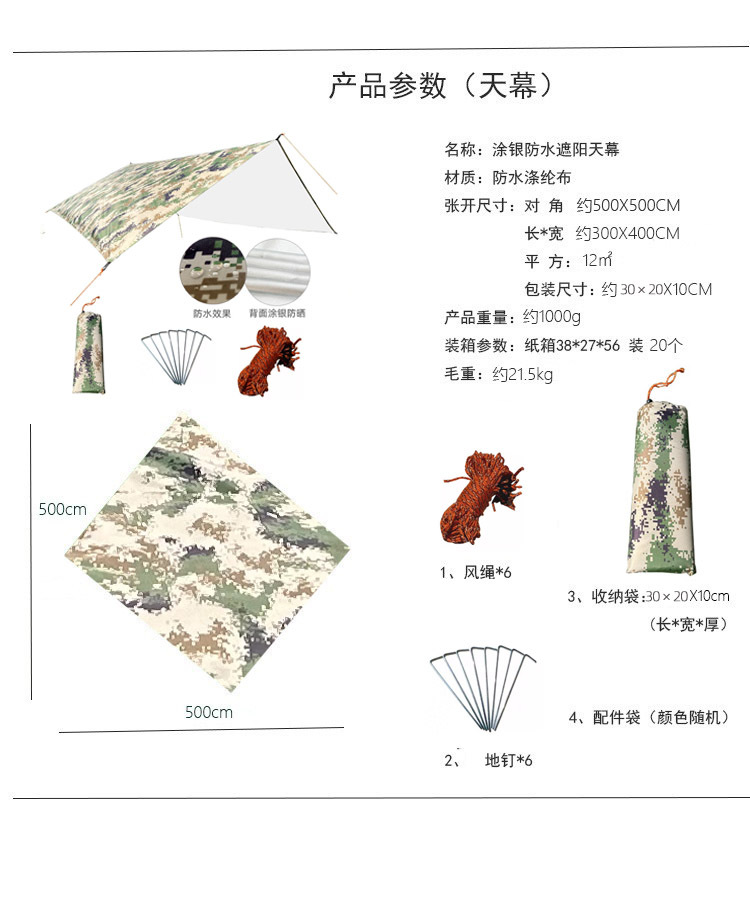 브랜치 도로 야외 차량 장착 4 코너 캐노피 방수 선 스크린 비치 파빌리온 양산 텐트 경량 실버 코팅 매트 바닥 천