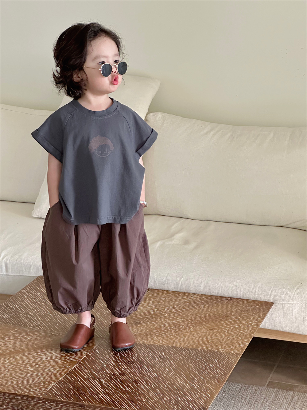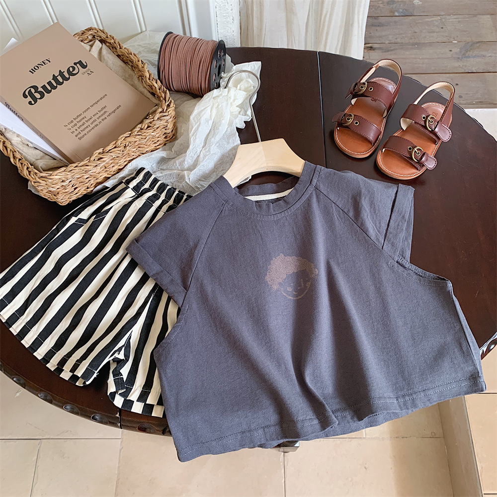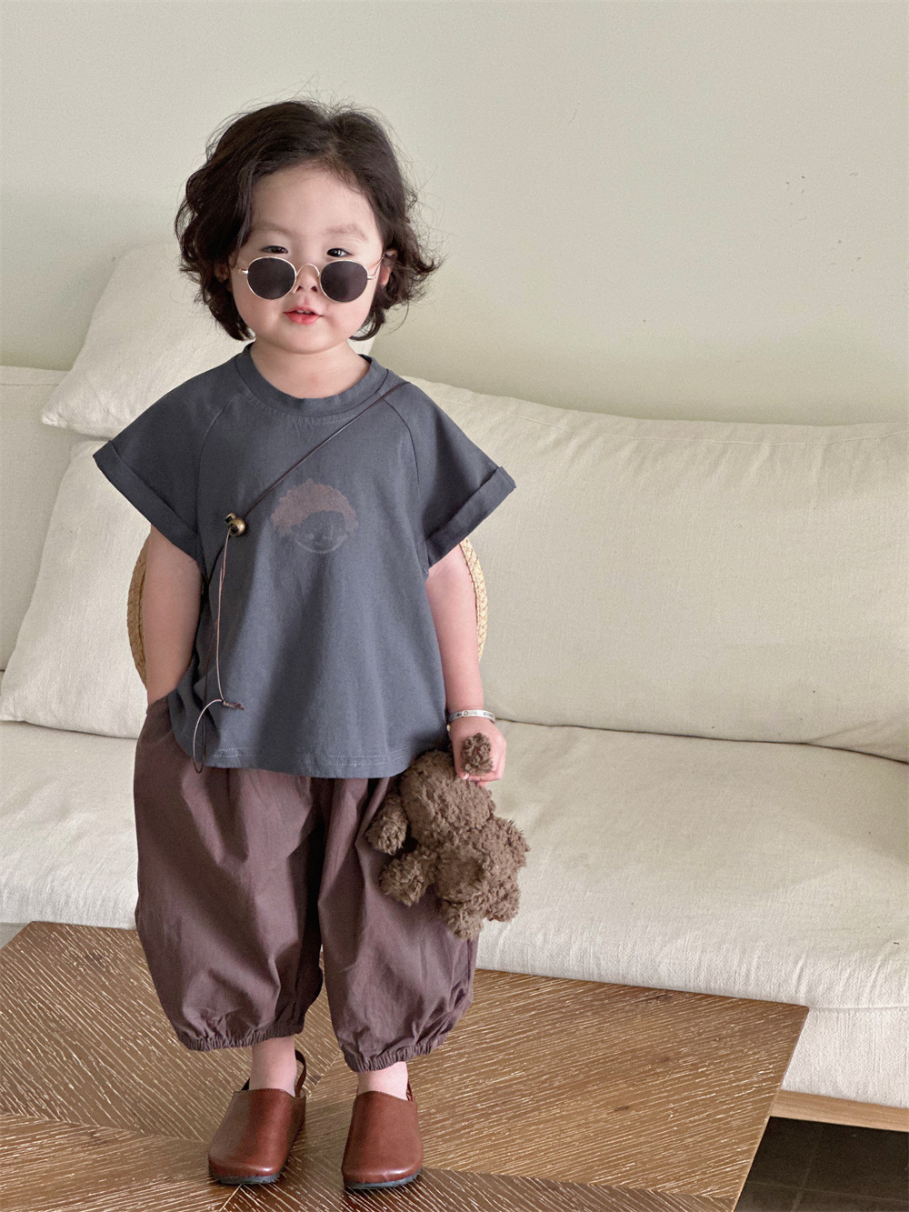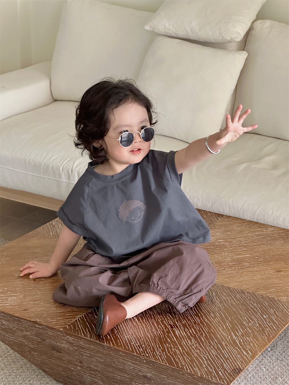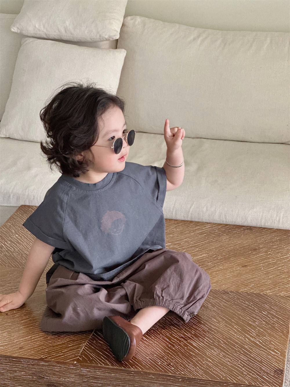 Montaigne Boys의 한국식 어깨 소매 여름 세트 2024 새로운 중소 아기 디자이너 투피스 스트레이트 세트
