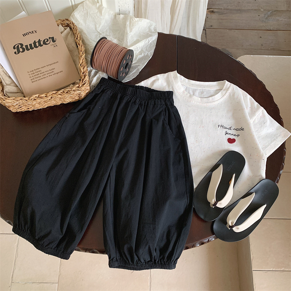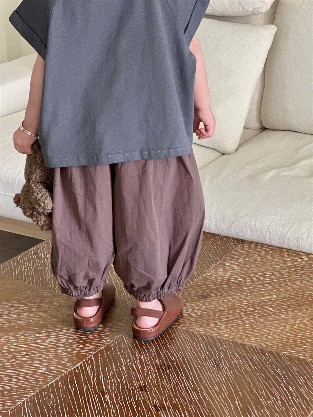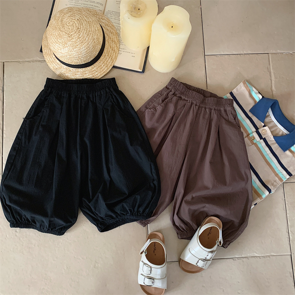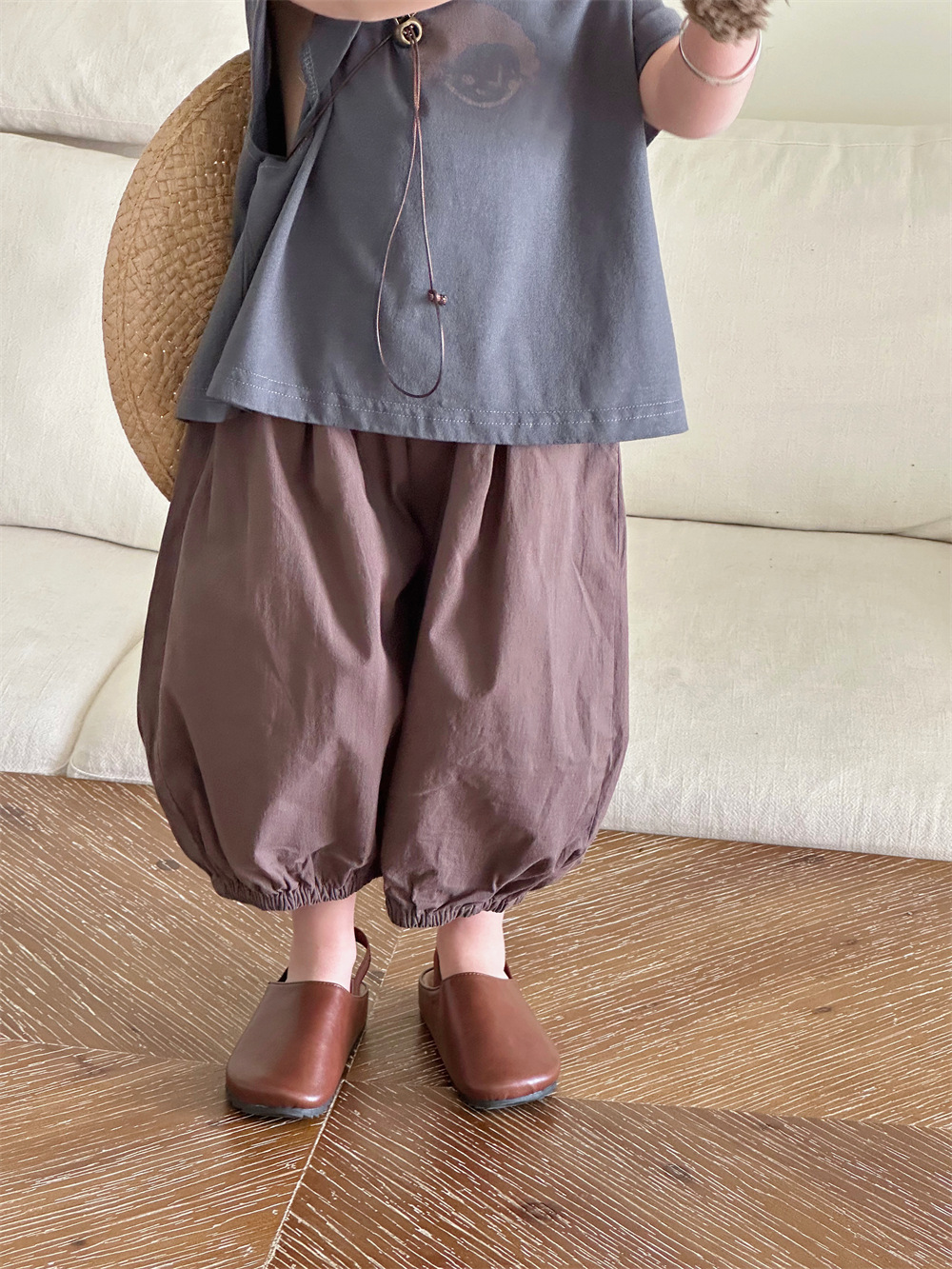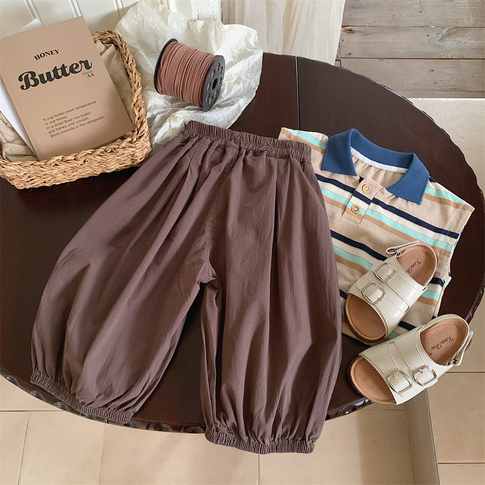 Montaigne Boys의 한국식 어깨 소매 여름 세트 2024 새로운 중소 아기 디자이너 투피스 스트레이트 세트