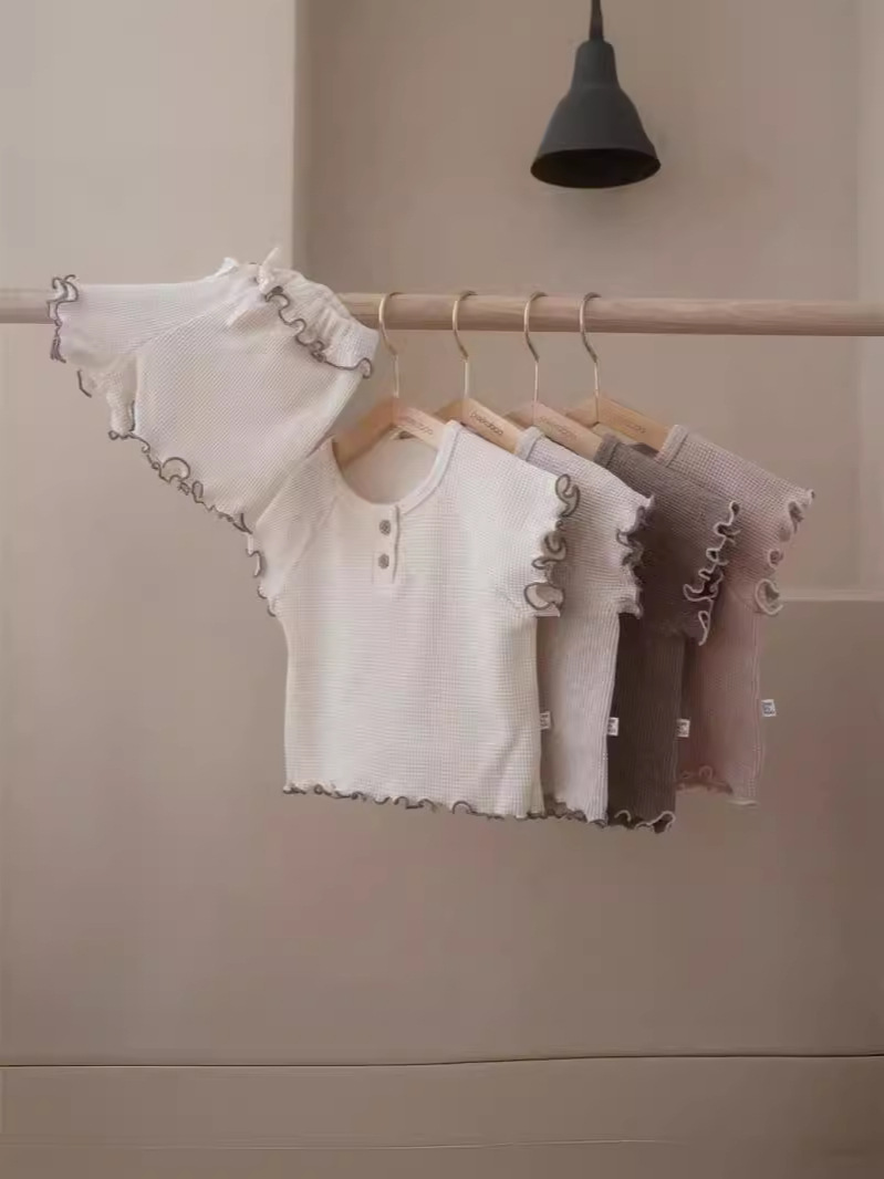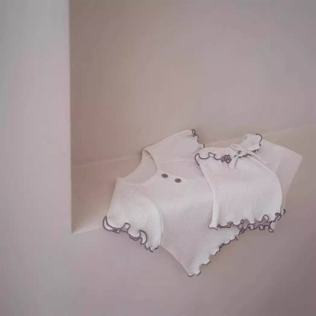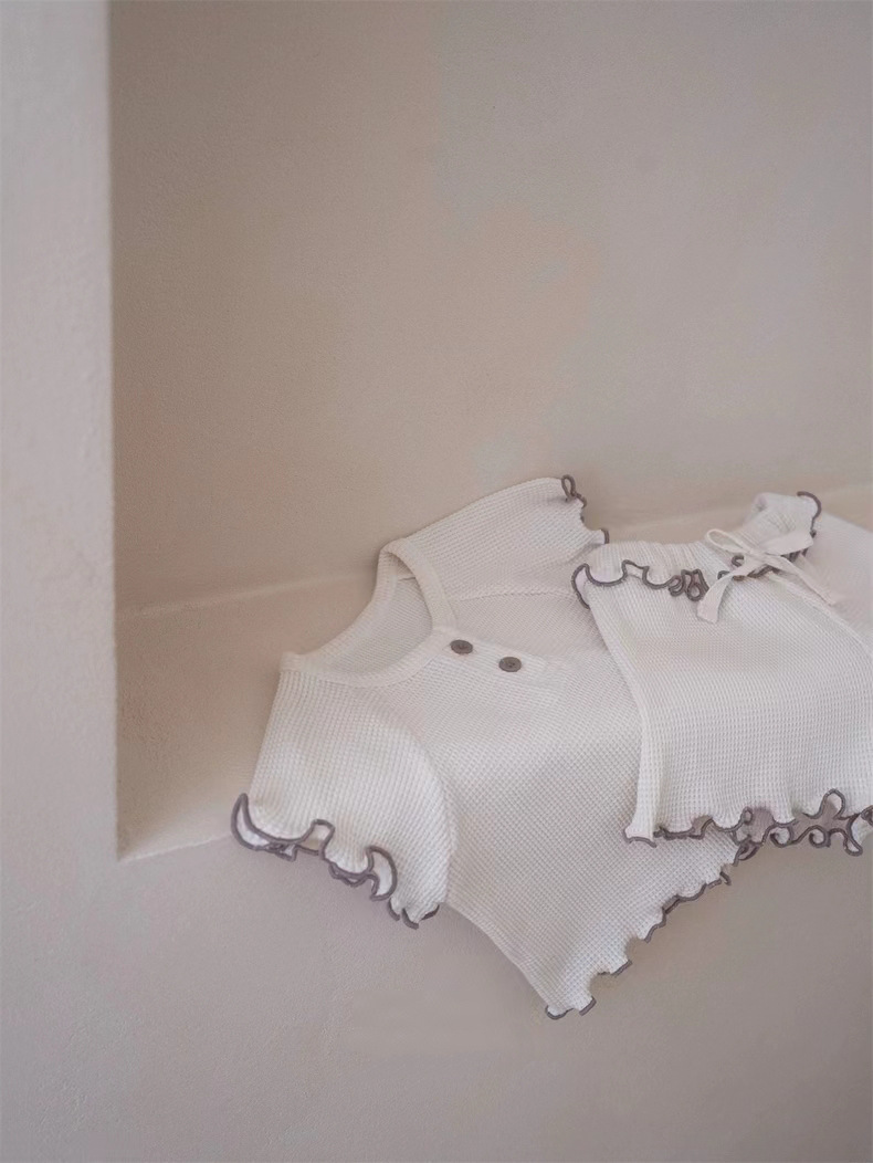Ins Korean Style Curl Edge Ear Beige White Crewneck Top Shorts 세트 남녀 아동복 올 매치 여름 스타일스토어 가기
