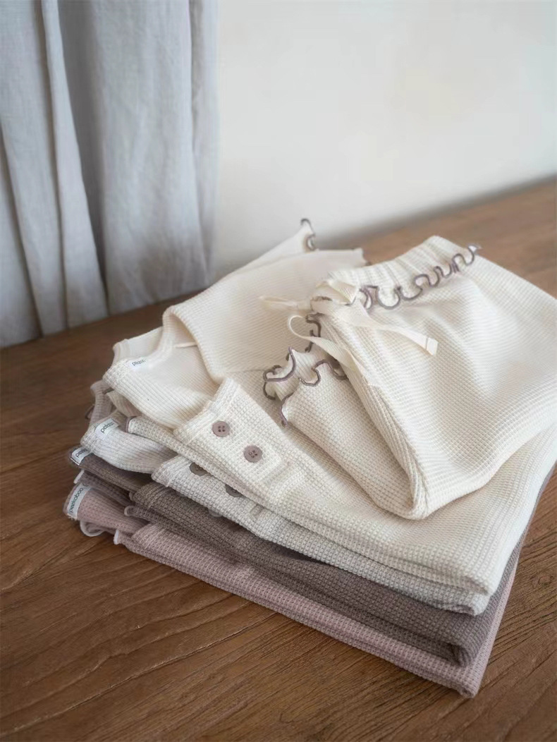 Ins Korean Style Curl Edge Ear Beige White Crewneck Top Shorts 세트 남녀 아동복 올 매치 여름 스타일