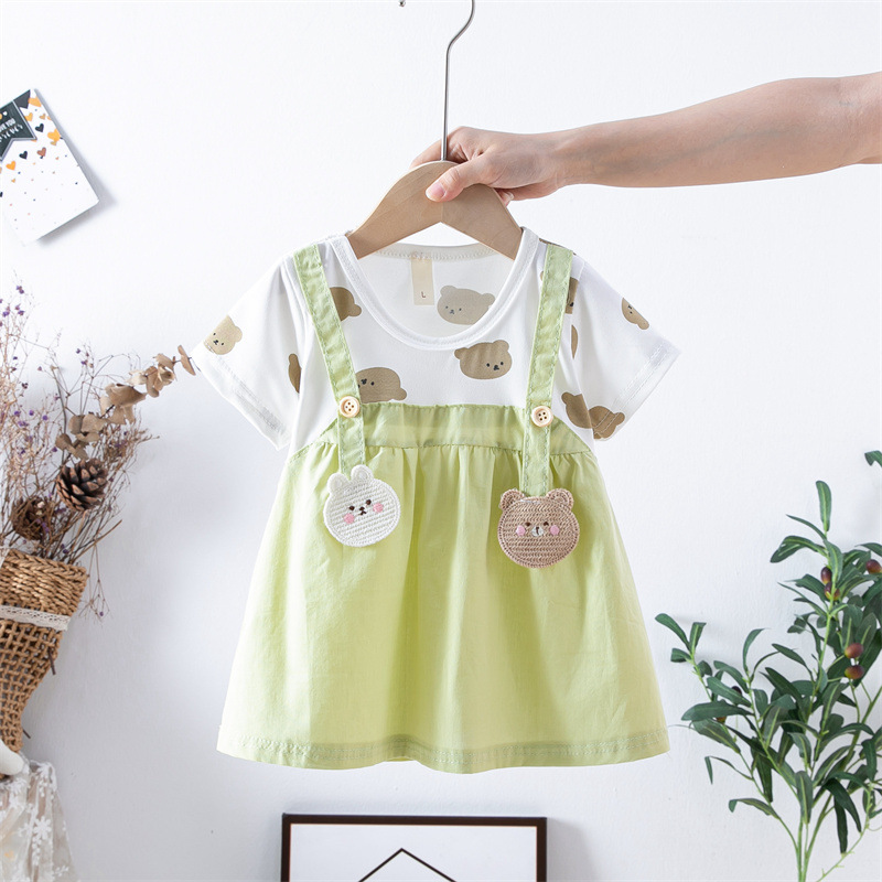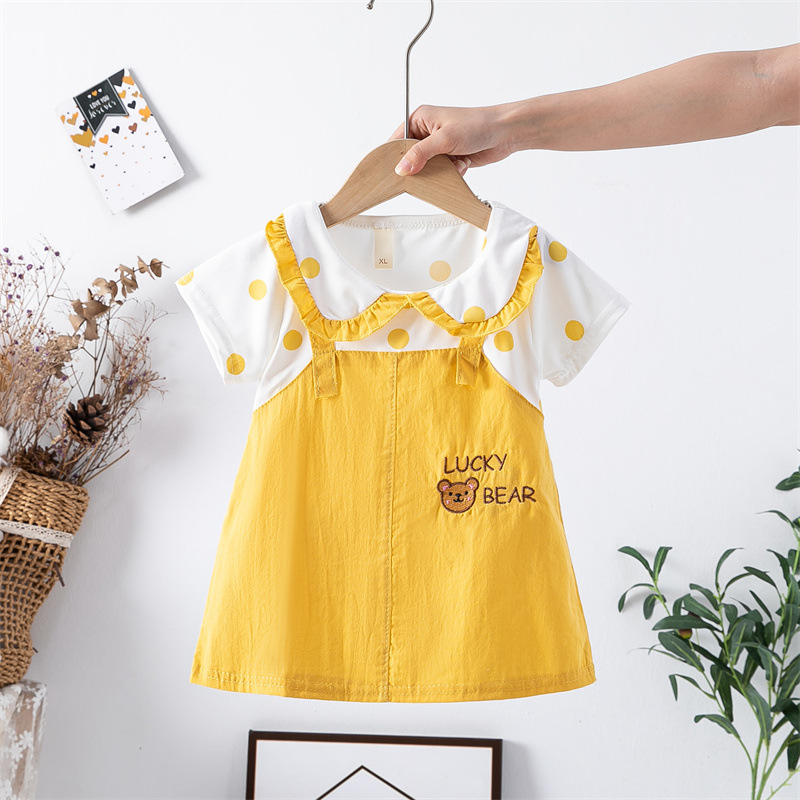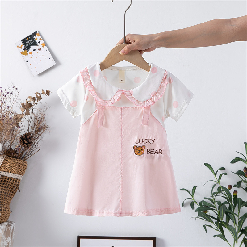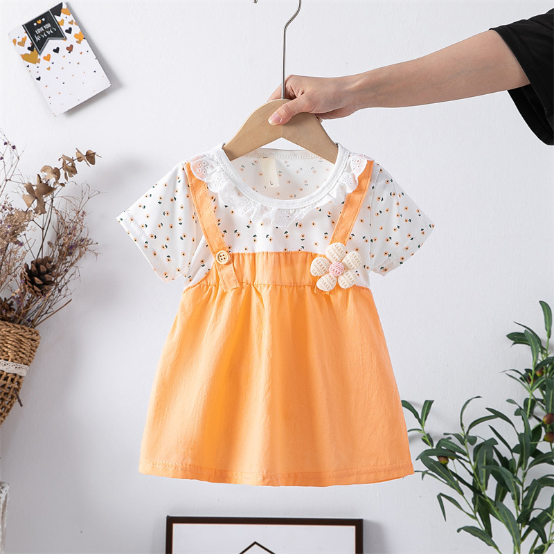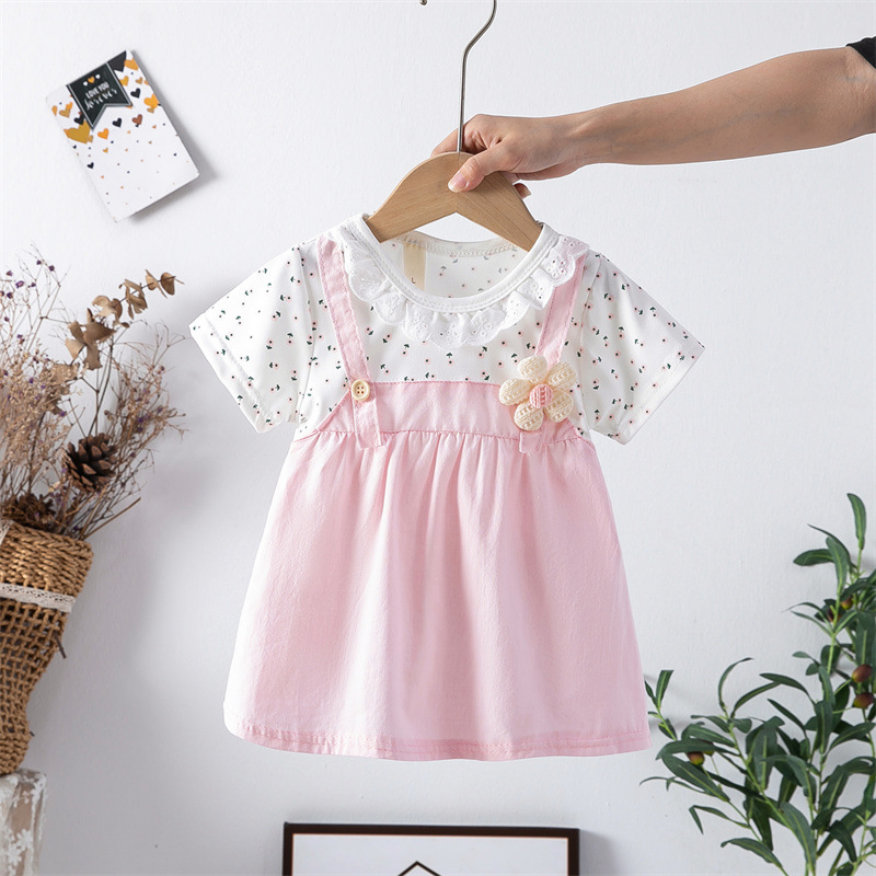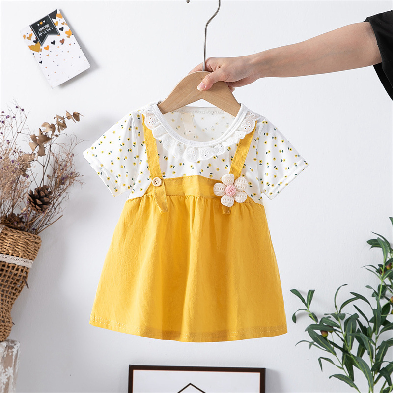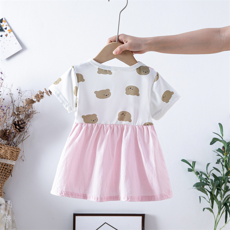 스팟 여름 한국 스타일 아기 소녀 아동복 인쇄 공주 면 짧은 소매 원피스 어린이 원피스