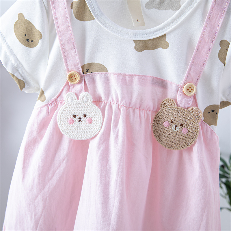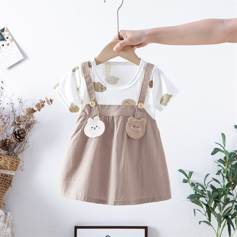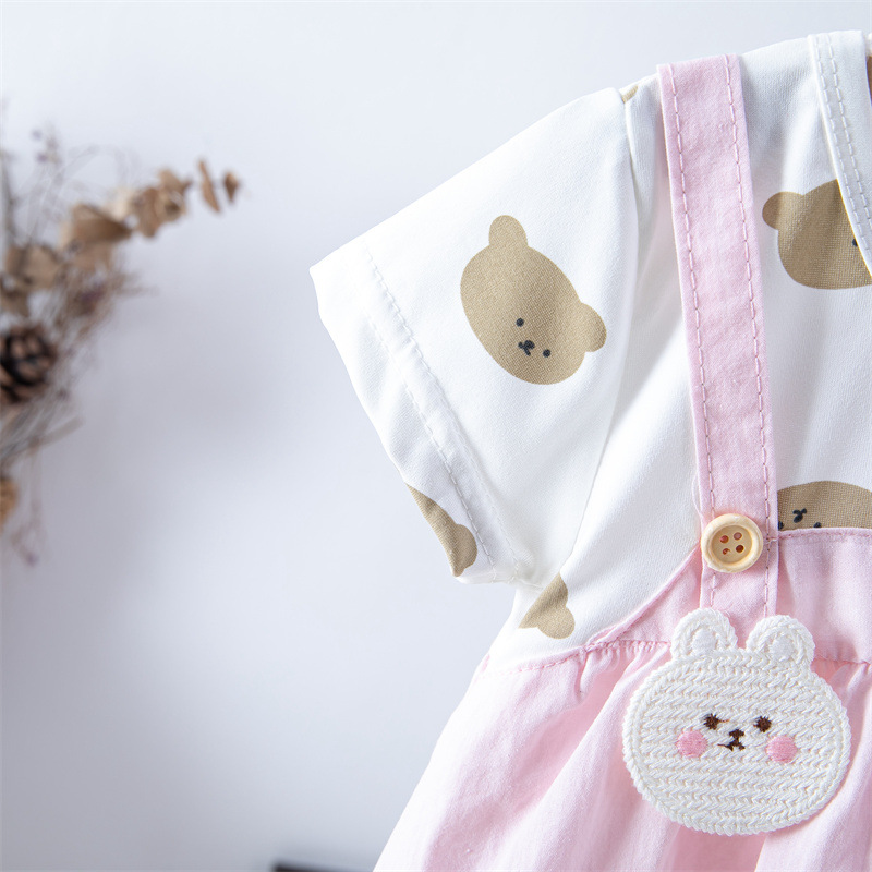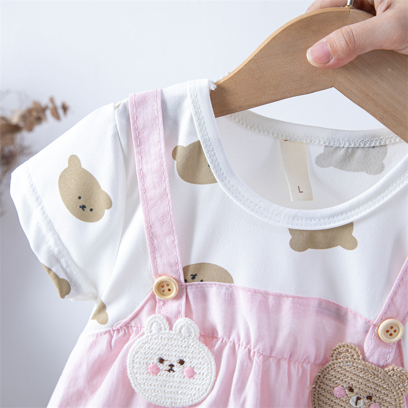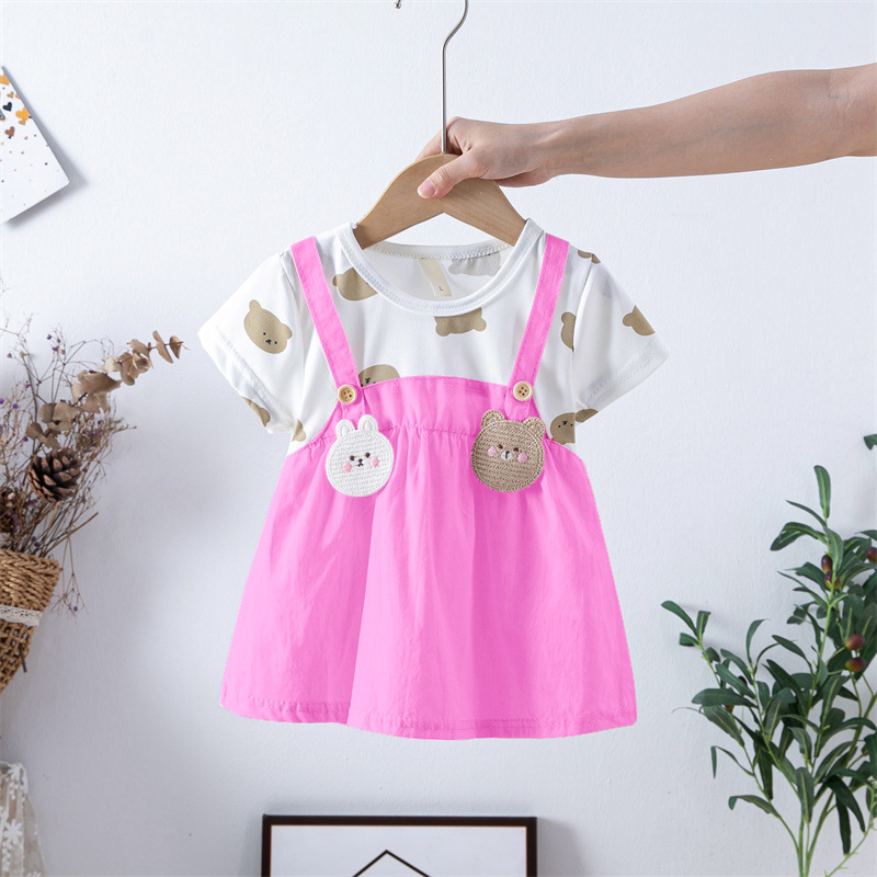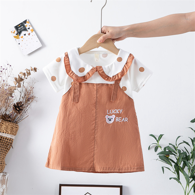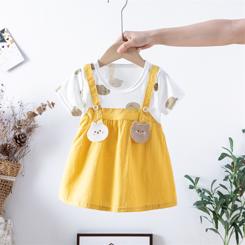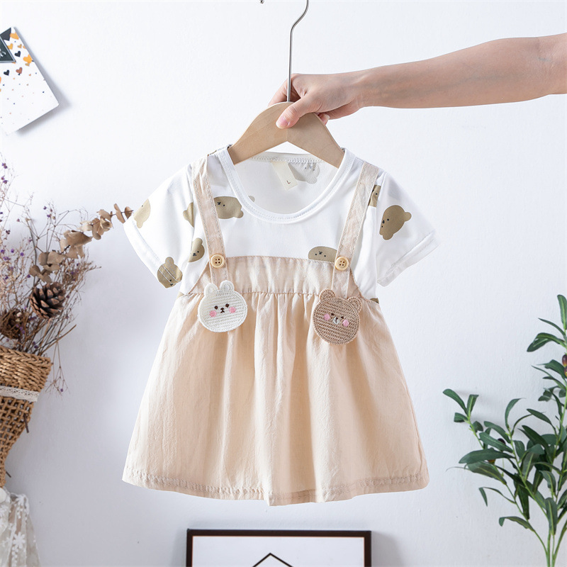 스팟 여름 한국 스타일 아기 소녀 아동복 인쇄 공주 면 짧은 소매 원피스 어린이 원피스