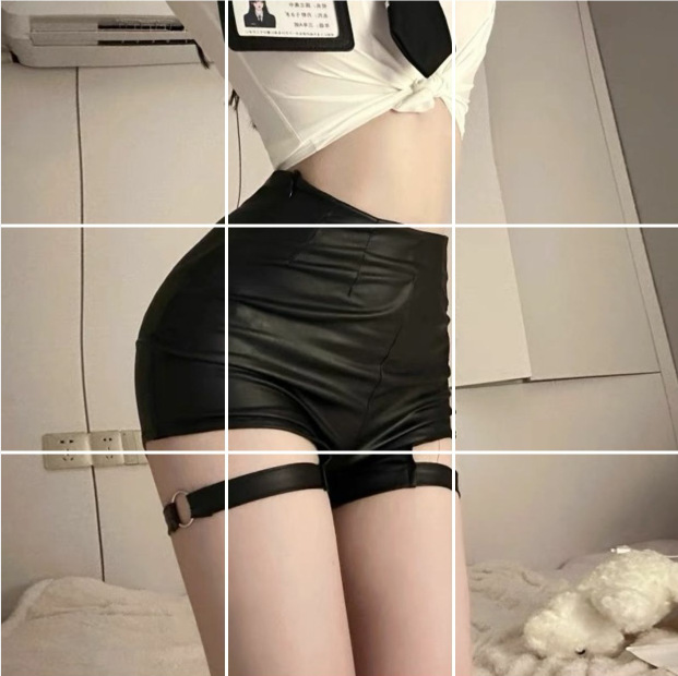 미국 스타일의 뜨거운 소녀 블랙 PU 가죽 바지 여성 가을 패션 높은 허리 반바지 꽉 엉덩이 핫 바지 바지 5199