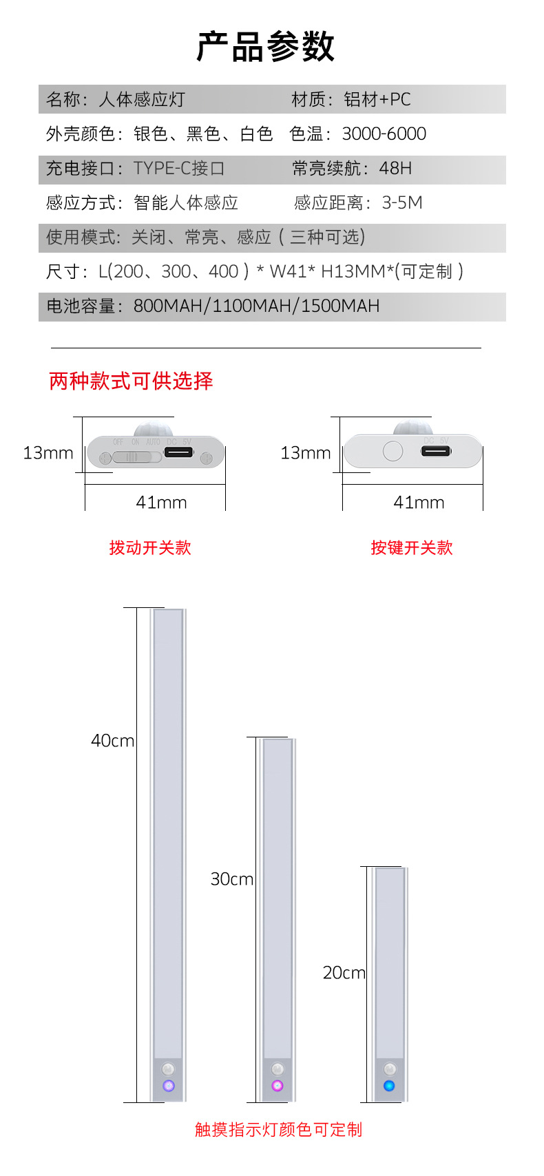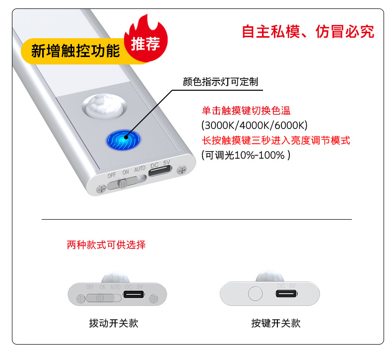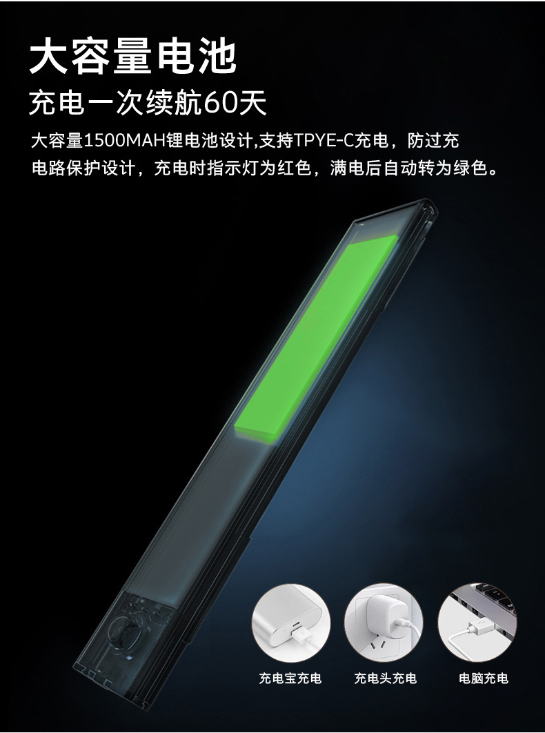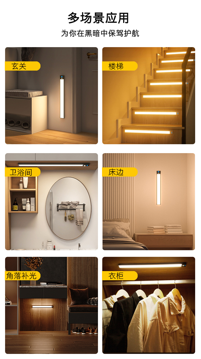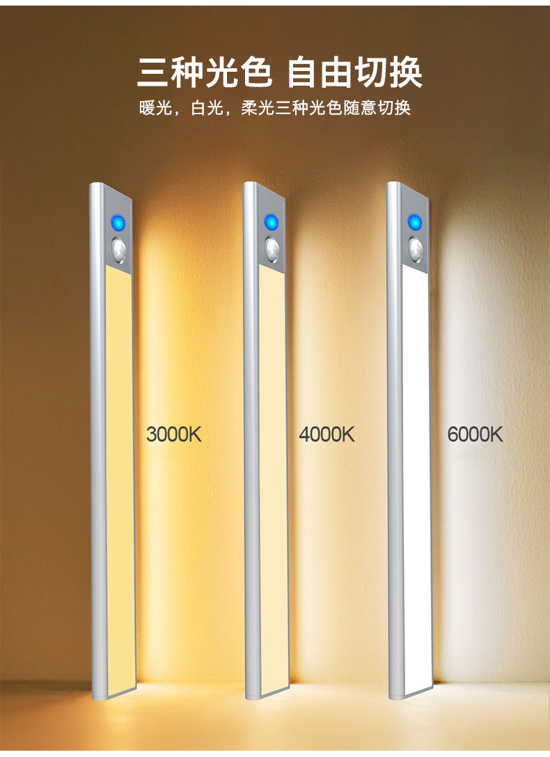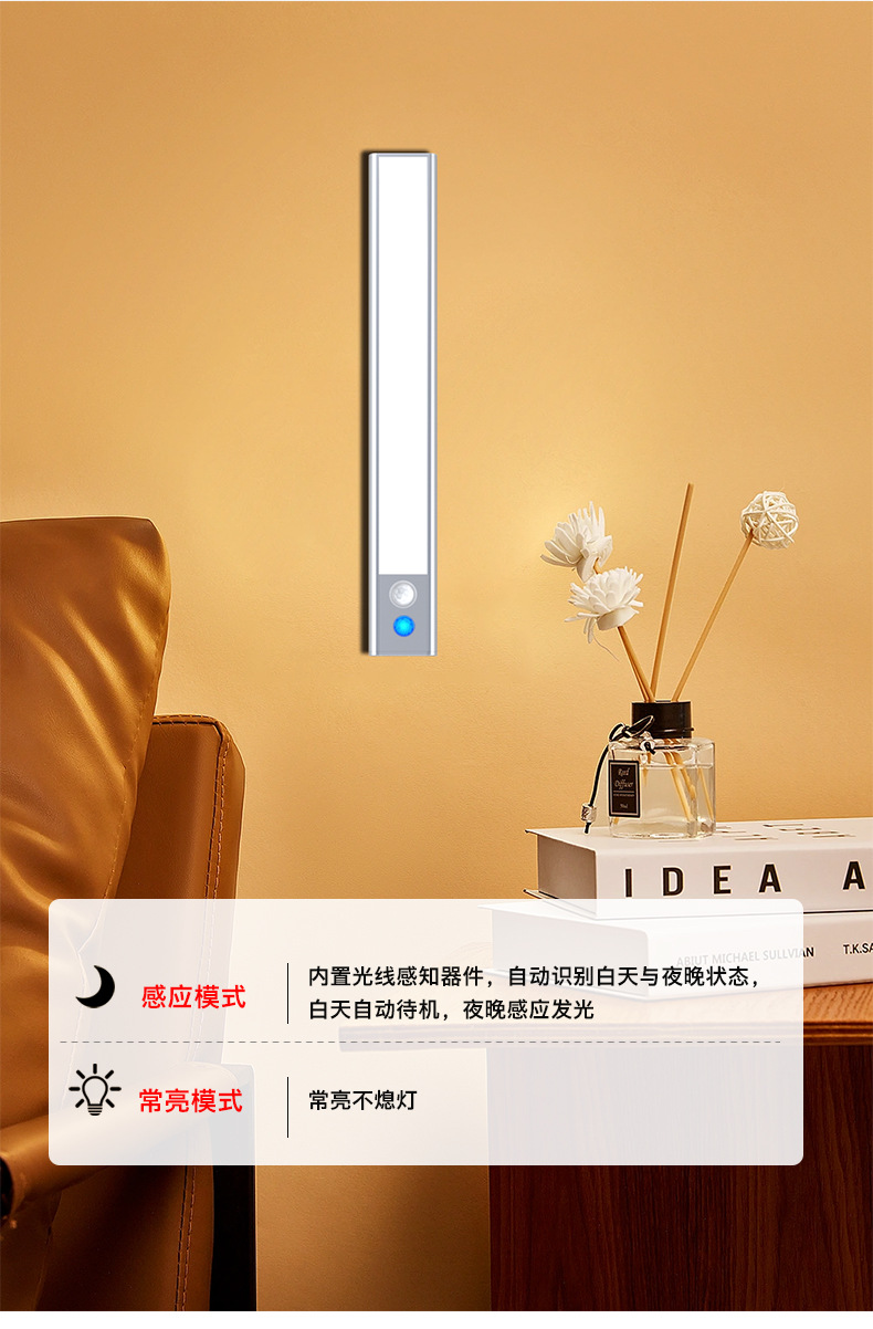 유럽과 미국 국경 인체 유도 램프 긴 내구성 자기 책장 옷장 무선 유도 터치 야간 조명