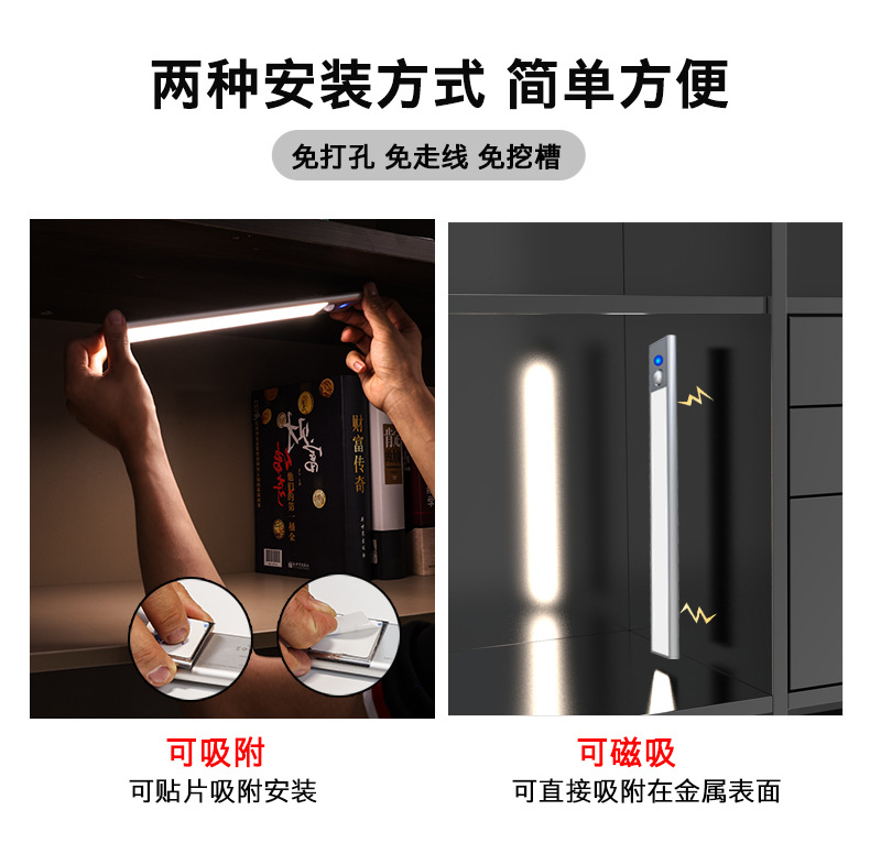 유럽과 미국 국경 인체 유도 램프 긴 내구성 자기 책장 옷장 무선 유도 터치 야간 조명스토어 가기
