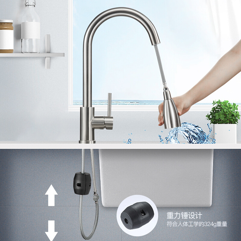 주방 풀 아웃 수도꼭지 뜨겁고 차가운 가정용 야채 분지 싱크 싱크 스테인레스 스틸 망원경 수도꼭지 스플래시 방지