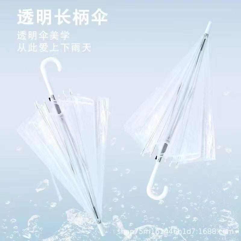 플라스틱 투명 우산 도매 8 뼈 자동 스트레이트 핸들 긴 손잡이 투명한 태양 차양스토어 가기