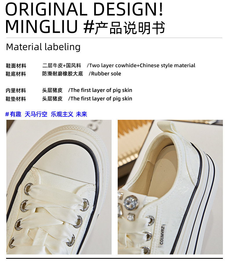 중국풍 천연 가죽 여성용 화이트 슈즈 2025 봄 신상품 첫 번째 층 돼지 가죽 안감 운동화 다용도 큐빅 장식 캐주얼 슈즈 여성용스토어 가기