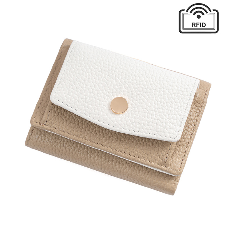 跨境真皮女士钱包短款 日式財布rfid软牛皮零錢袋三折小钱包purse