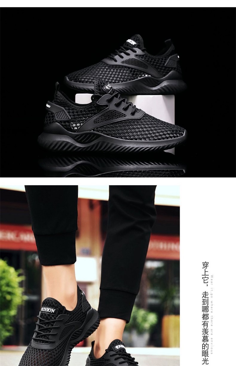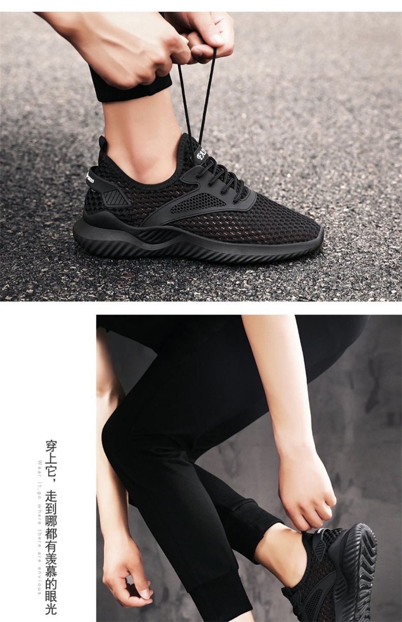 남성 신발 메쉬 신발 메시 통기성 중공 여름 미끄럼 방지 부드러운 바닥 스포츠 캐주얼 신발 크로스 국경 대외 무역 남성 블랙