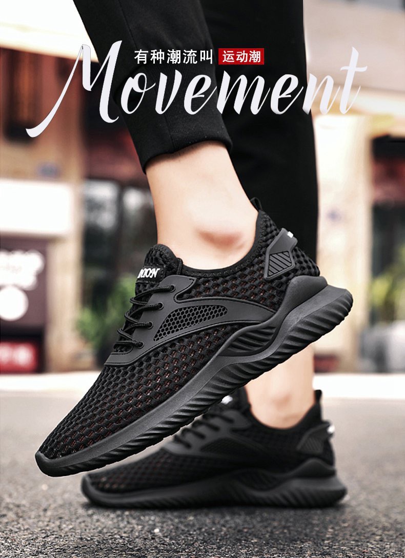 男鞋网鞋网面透气镂空夏季防滑软底运动休闲鞋跨境外贸男士黑色