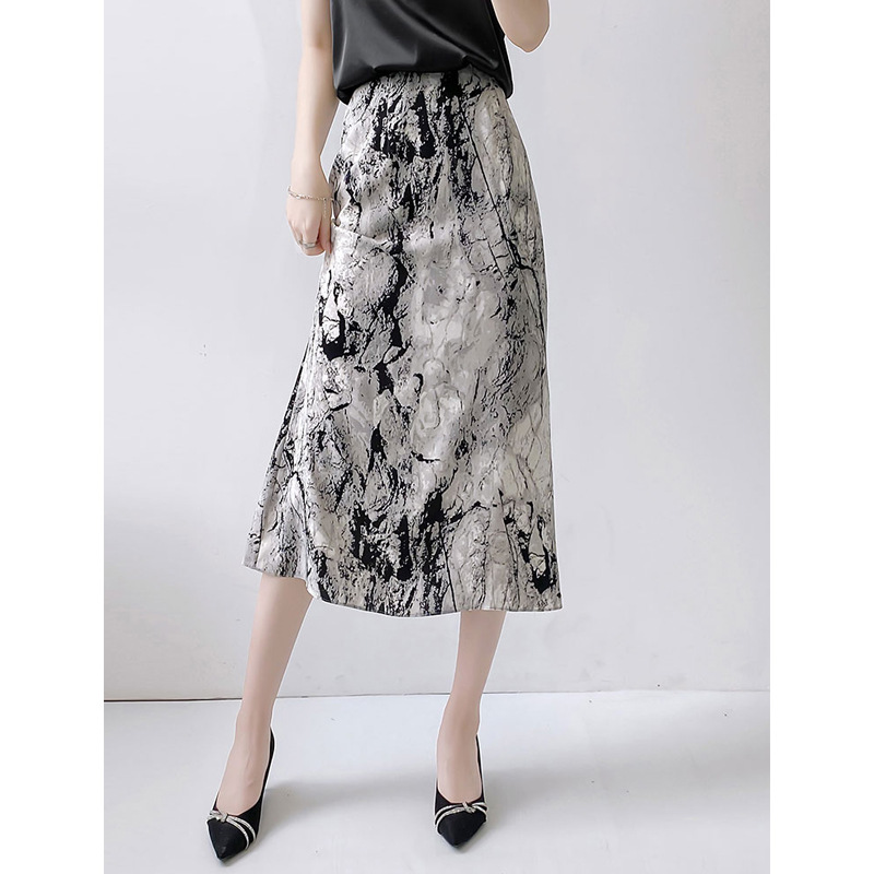 하이 퀄리티 스커트 여성의 여름 얇은 높은 허리 잉크 시미 염료 유화 인쇄 중간 길이 A 라인 피쉬 테일 스커트스토어 가기