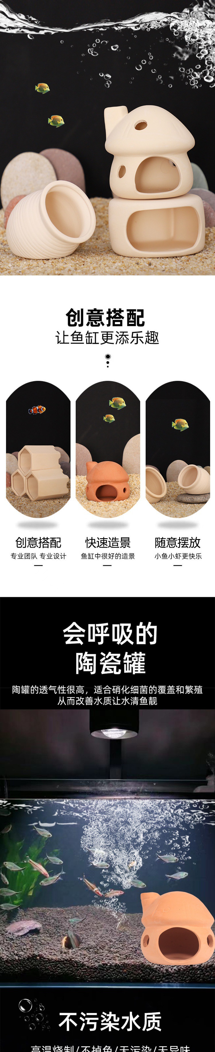 물고기 탱크 세라믹 탈출 집 풍경 작은 장식품 새우 집 새우 둥지 재현 냄비 싱크 홀 물고기 둥지 전체 패키지스토어 가기