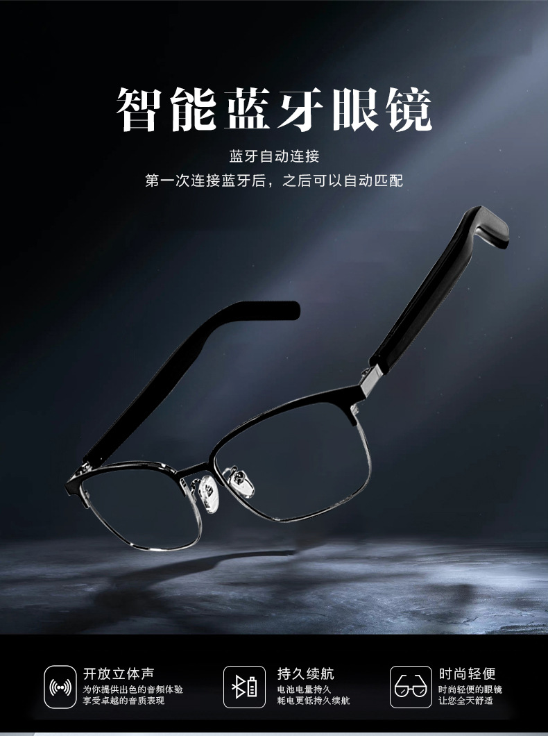 스마트 블루투스 안경 GS11 아메리칸 레트로 메탈 더블 빔 마그네틱 충전 변색 렌즈 마그네틱 고속 충전스토어 가기