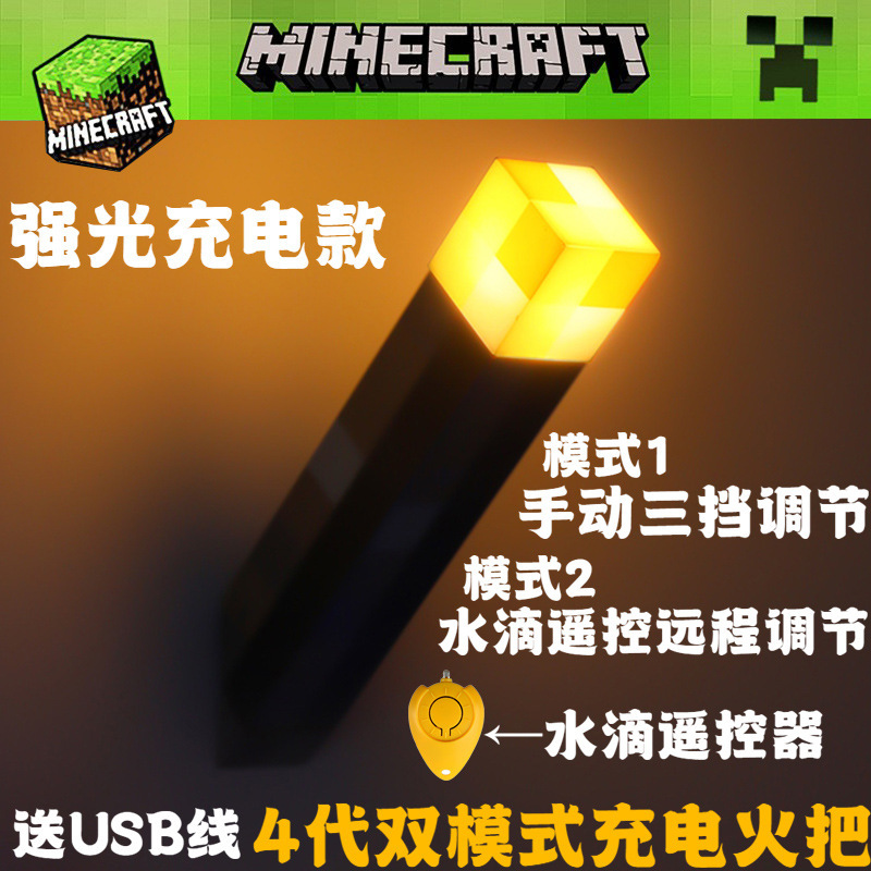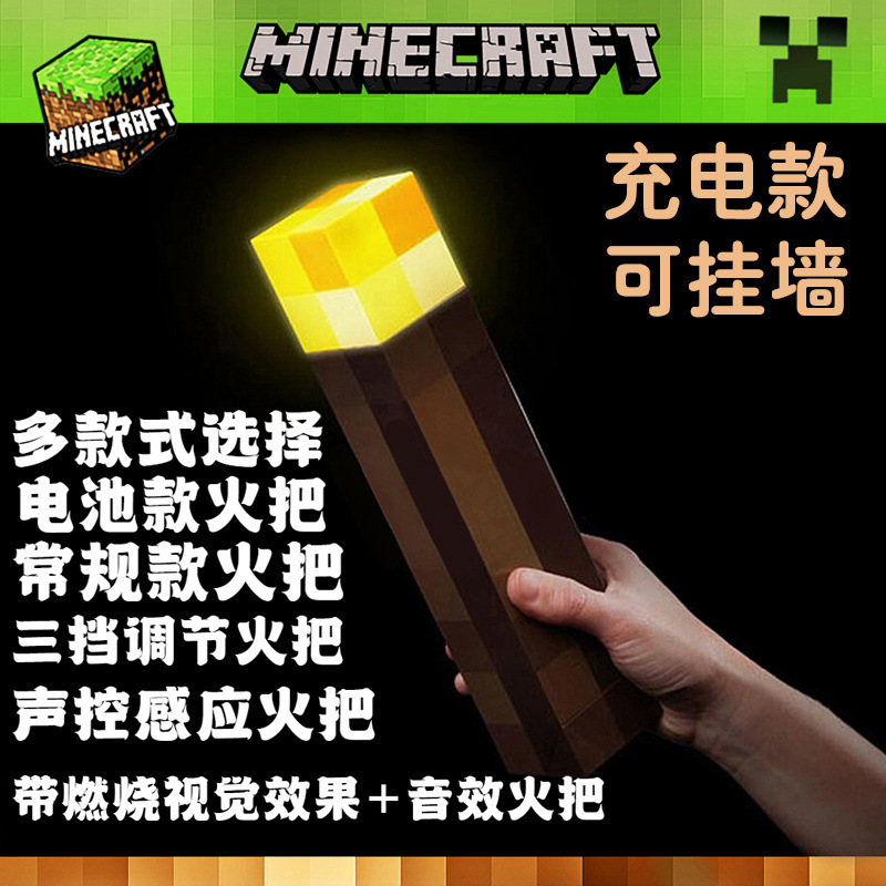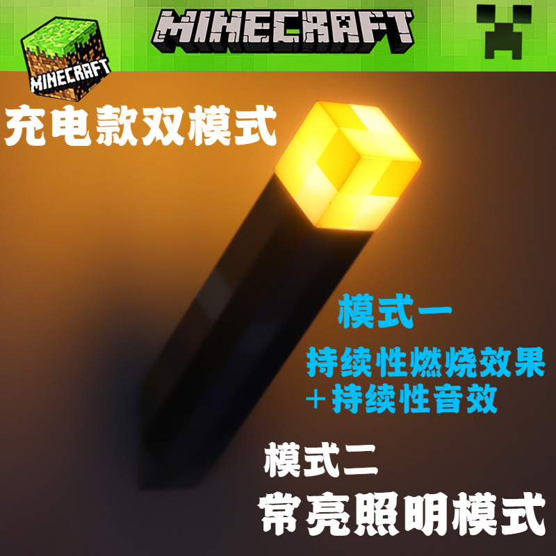 Minecraft 我的世界火把灯可充电火炬钻石矿灯变色瓶武器儿童模型