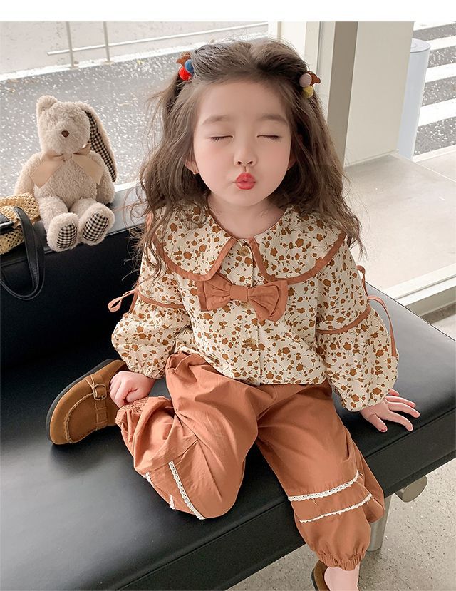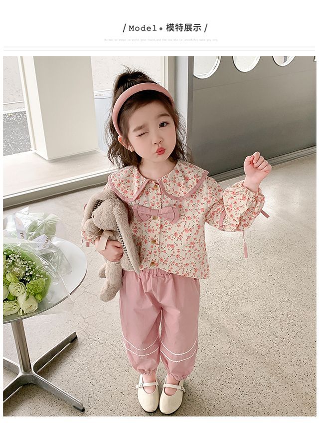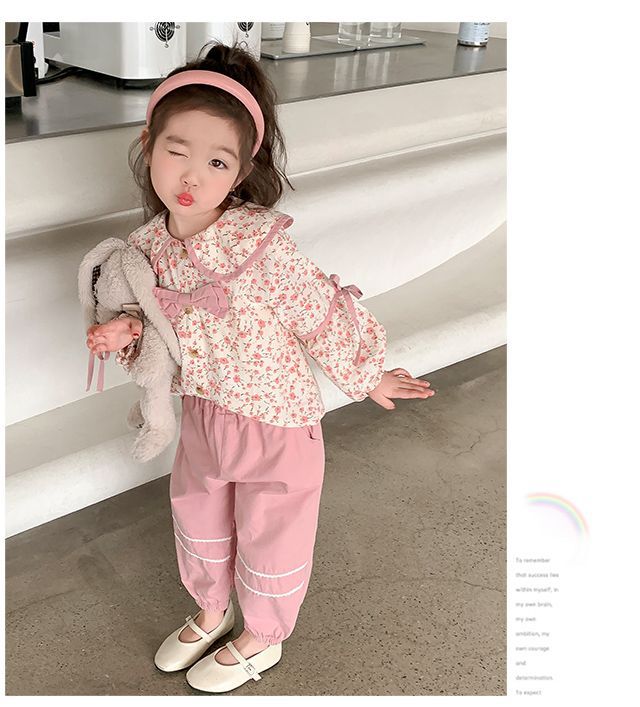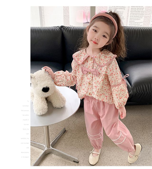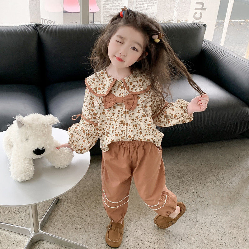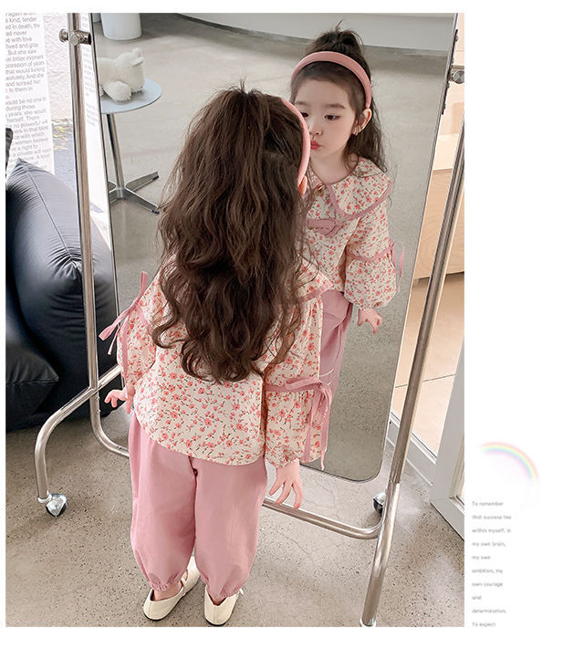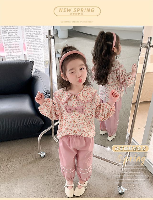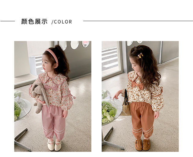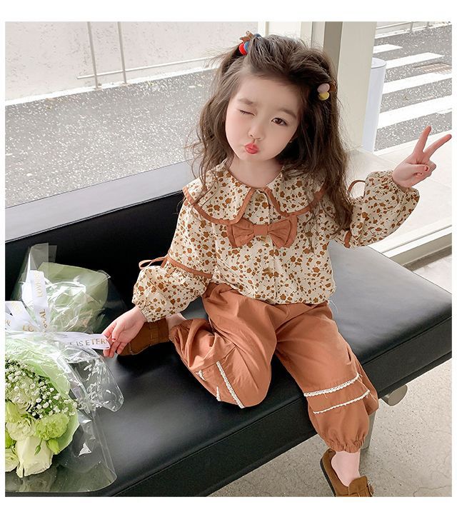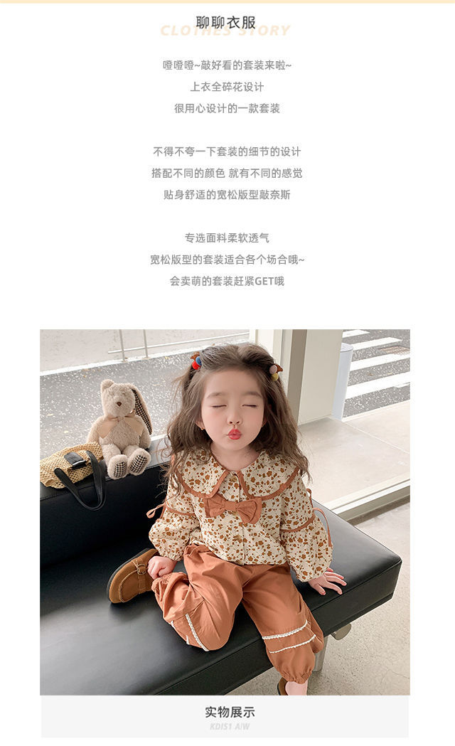 여자 가을 세트 두 조각 가을 외국 스타일 튀김 거리 2024 새로운 아기 스포츠 봄과 가을 폭발 옷