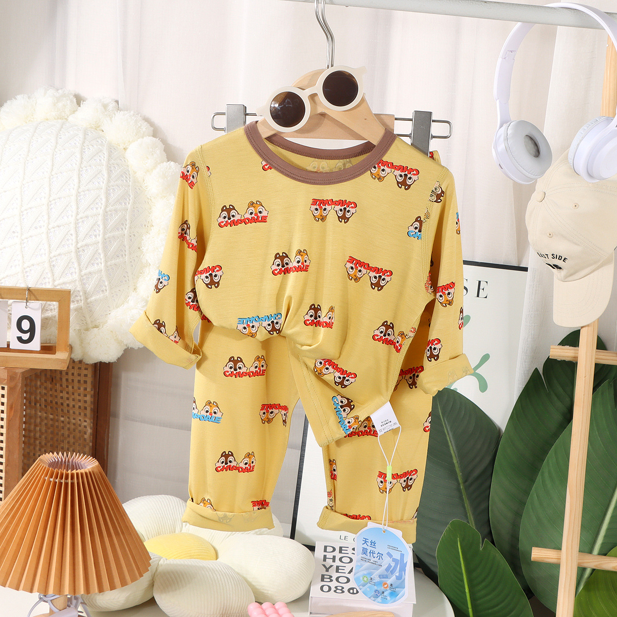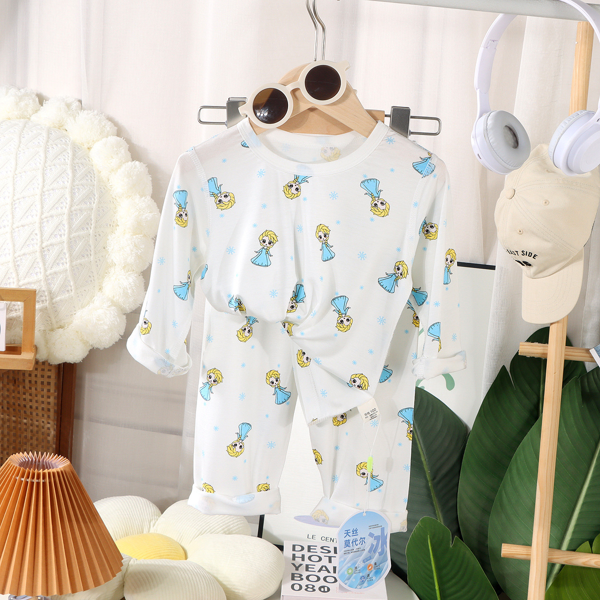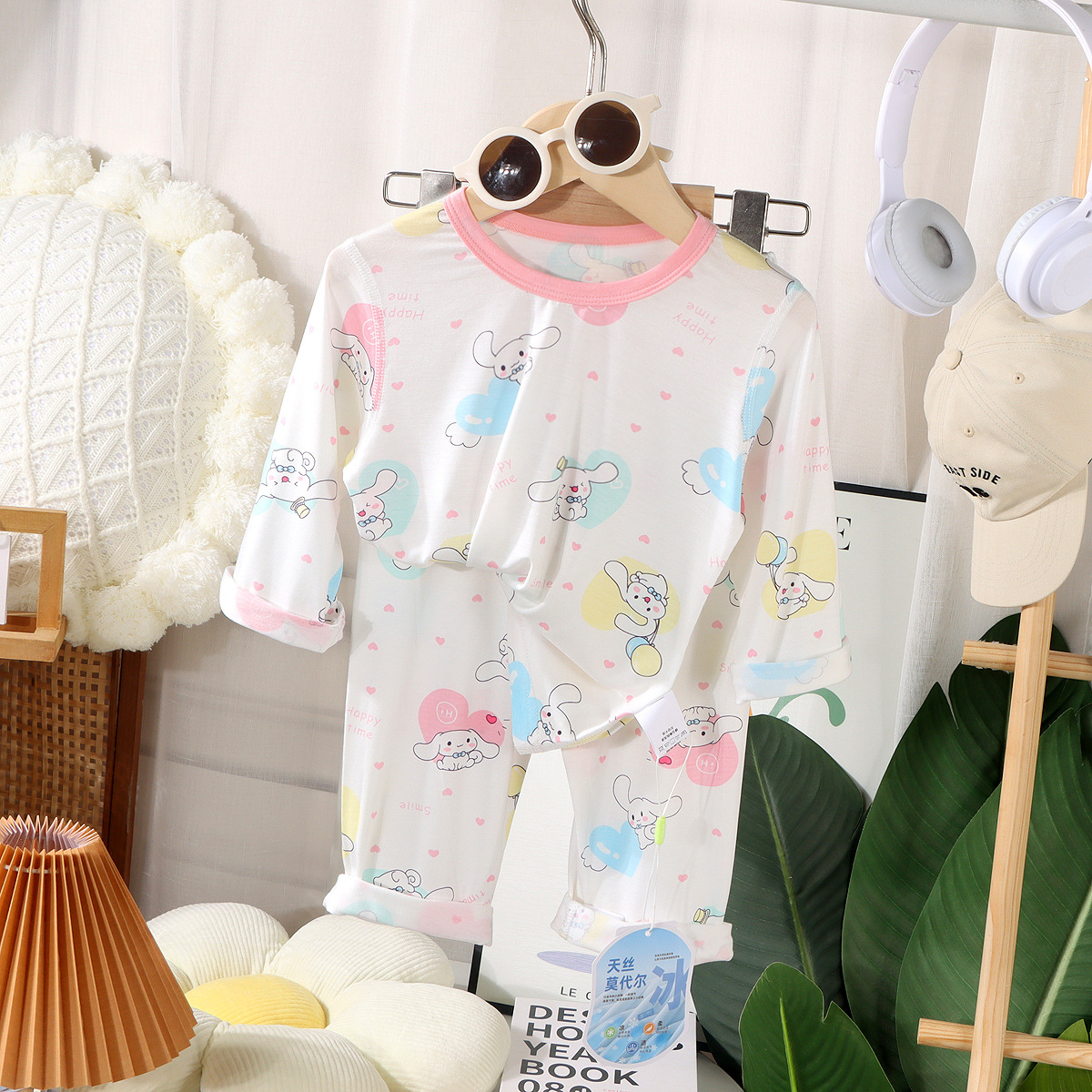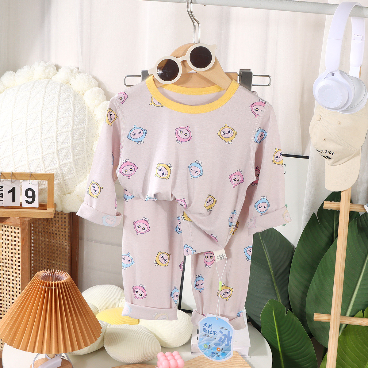2024 여름 잠옷 어린이 가정 의류 뼈없는 소년 소녀 9 소매 에어컨 세트 머리카락 세대