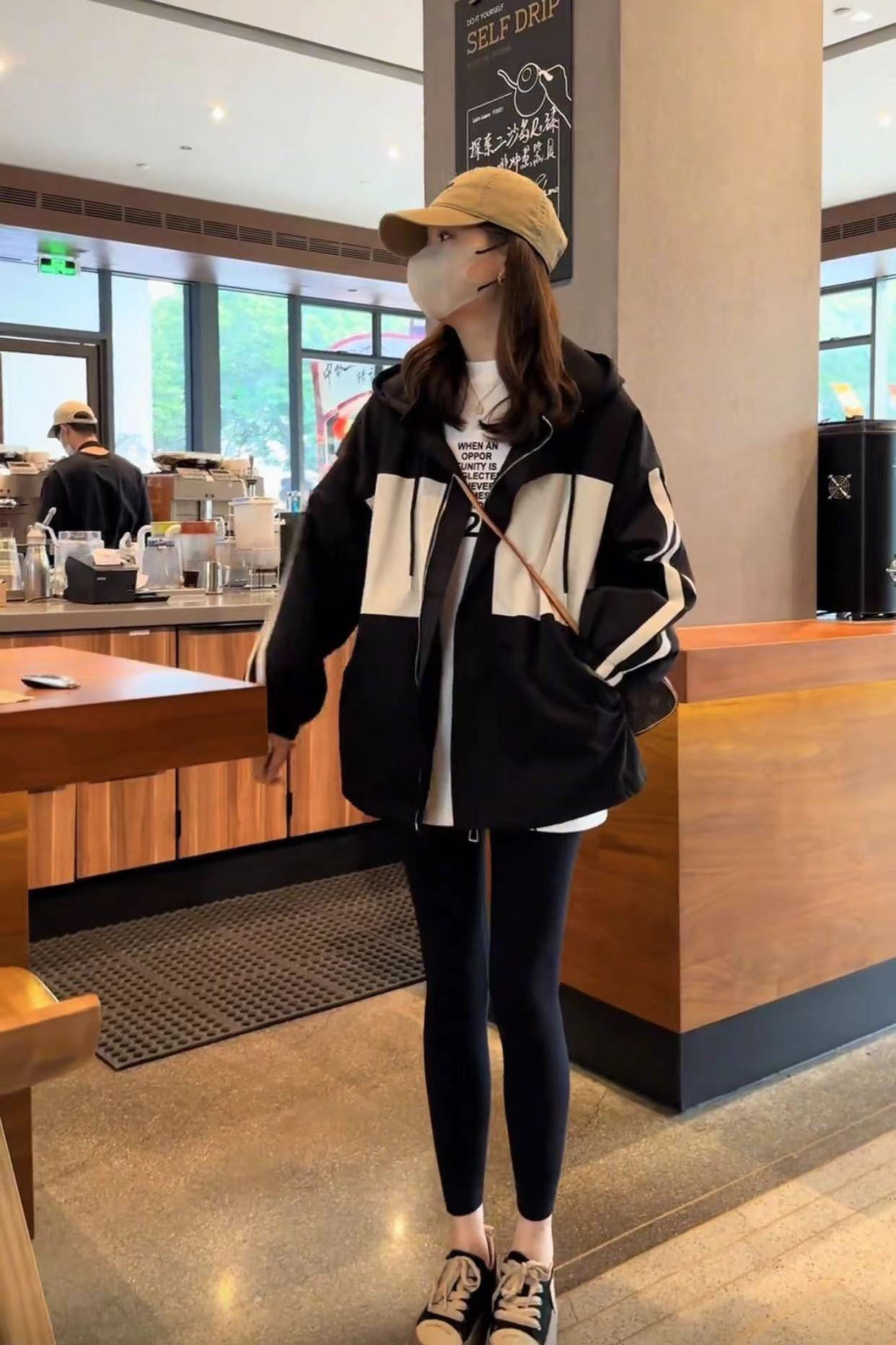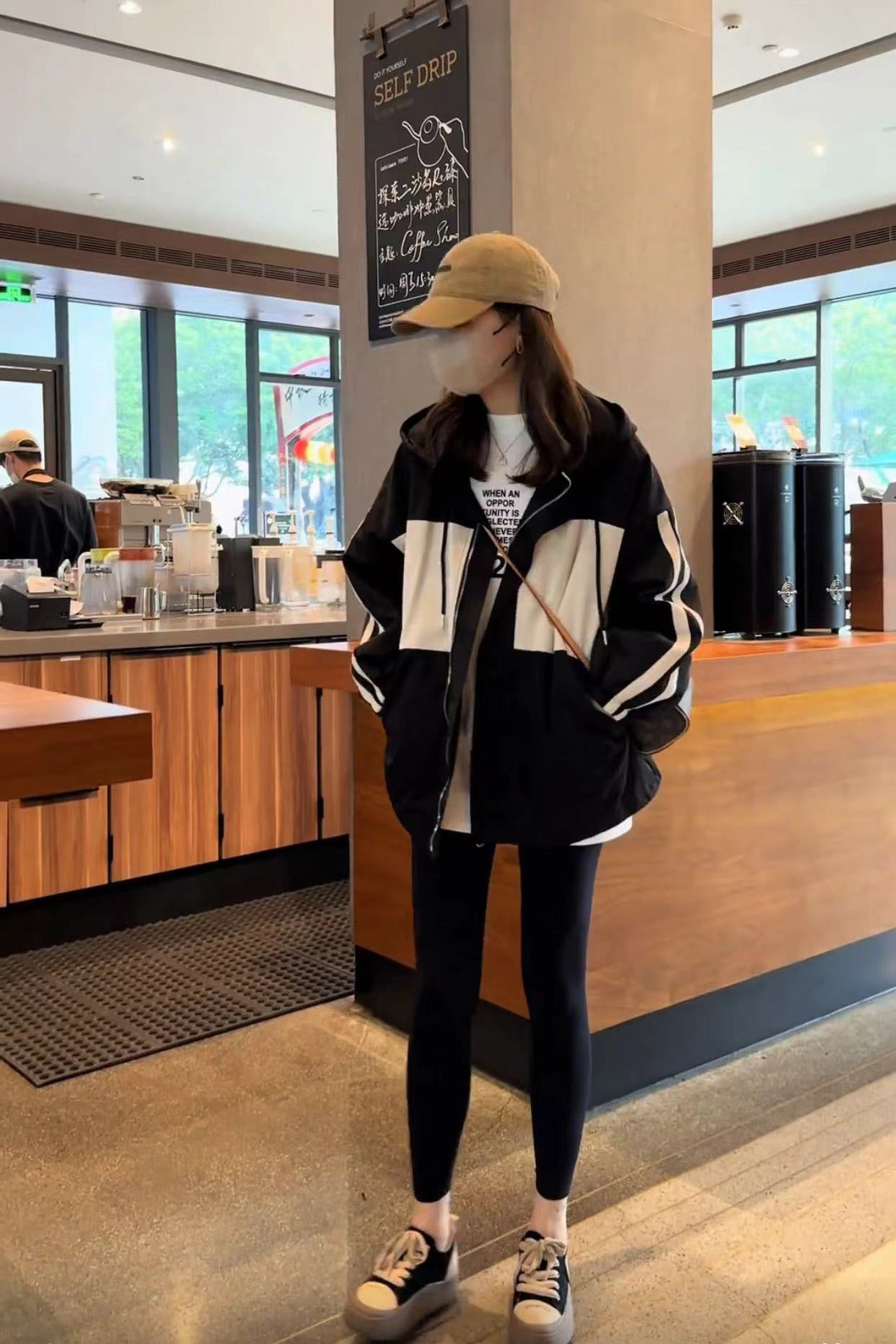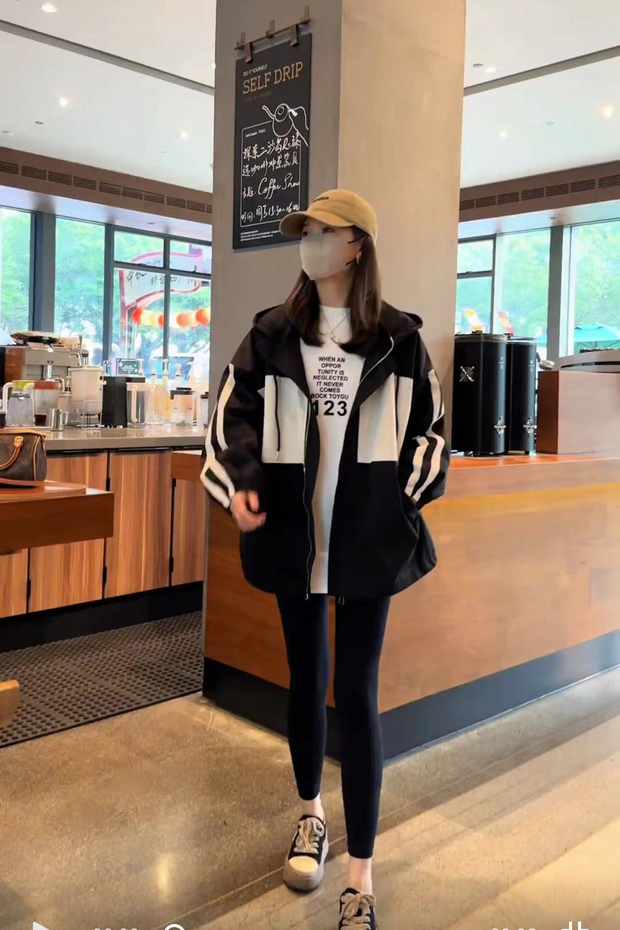 배색 후드 재킷 여성용 2025 봄 가을 신상품 소형 다용도 윈드브레이커 재킷 야구복 상의스토어 가기